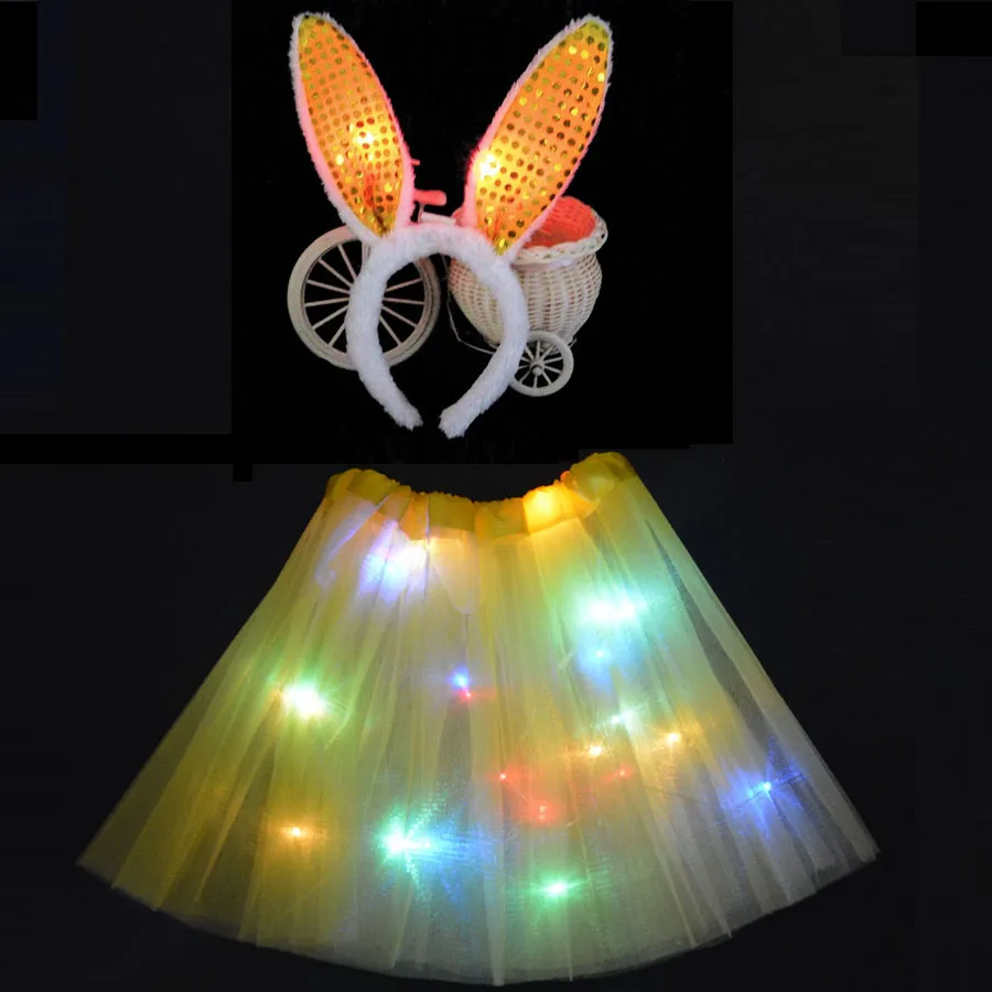 Светящаяся детская юбка-пачка со светодиодной подсветильник кой для девочек, детская одежда, повязка на голову для вечеринки, корона, кролик, зайчик, костюм, свадебное украшение, косплей