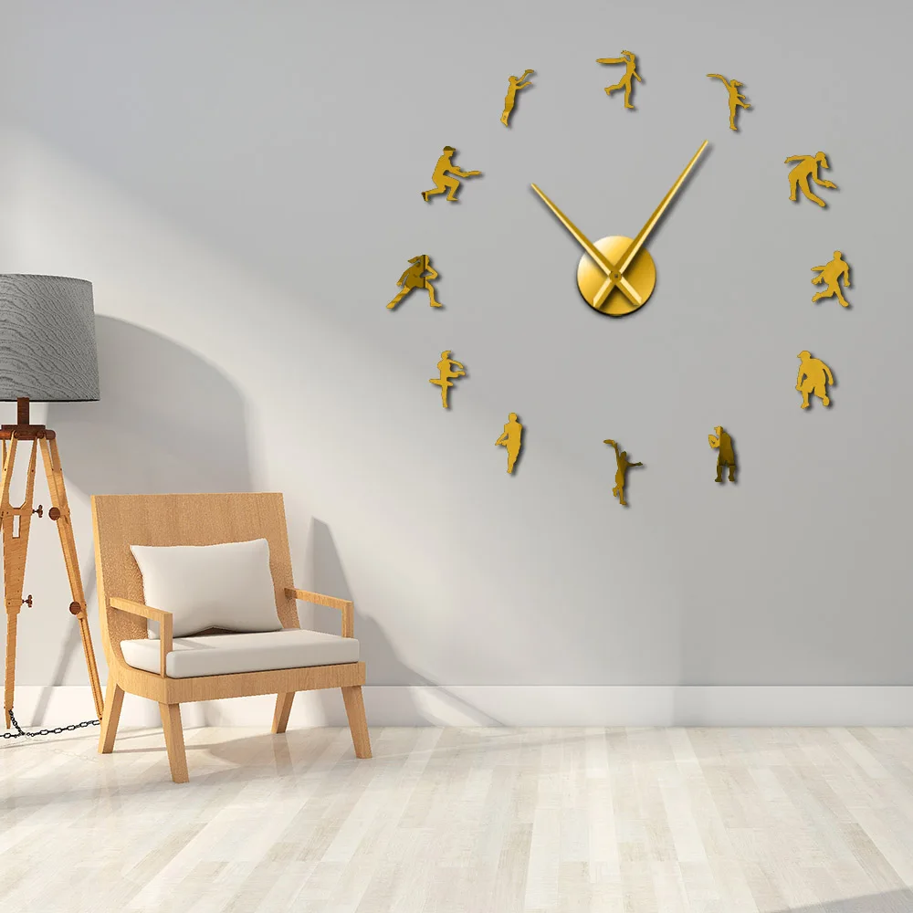 Большие настенные часы для теннисных игр, для самостоятельной сборки, фигурка тренера атлета, тенниса, художественный декор, зеркальный эффект, пользовательские часы