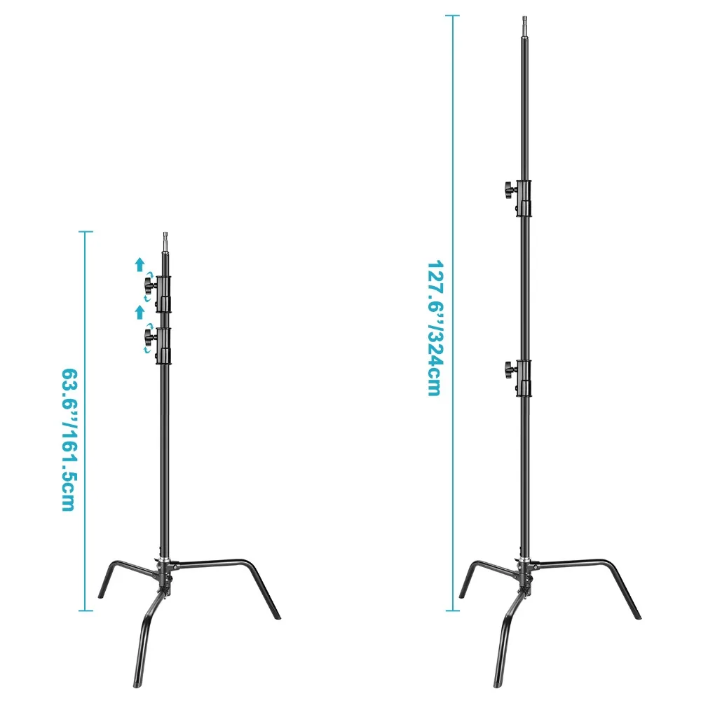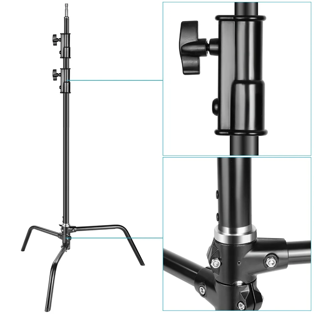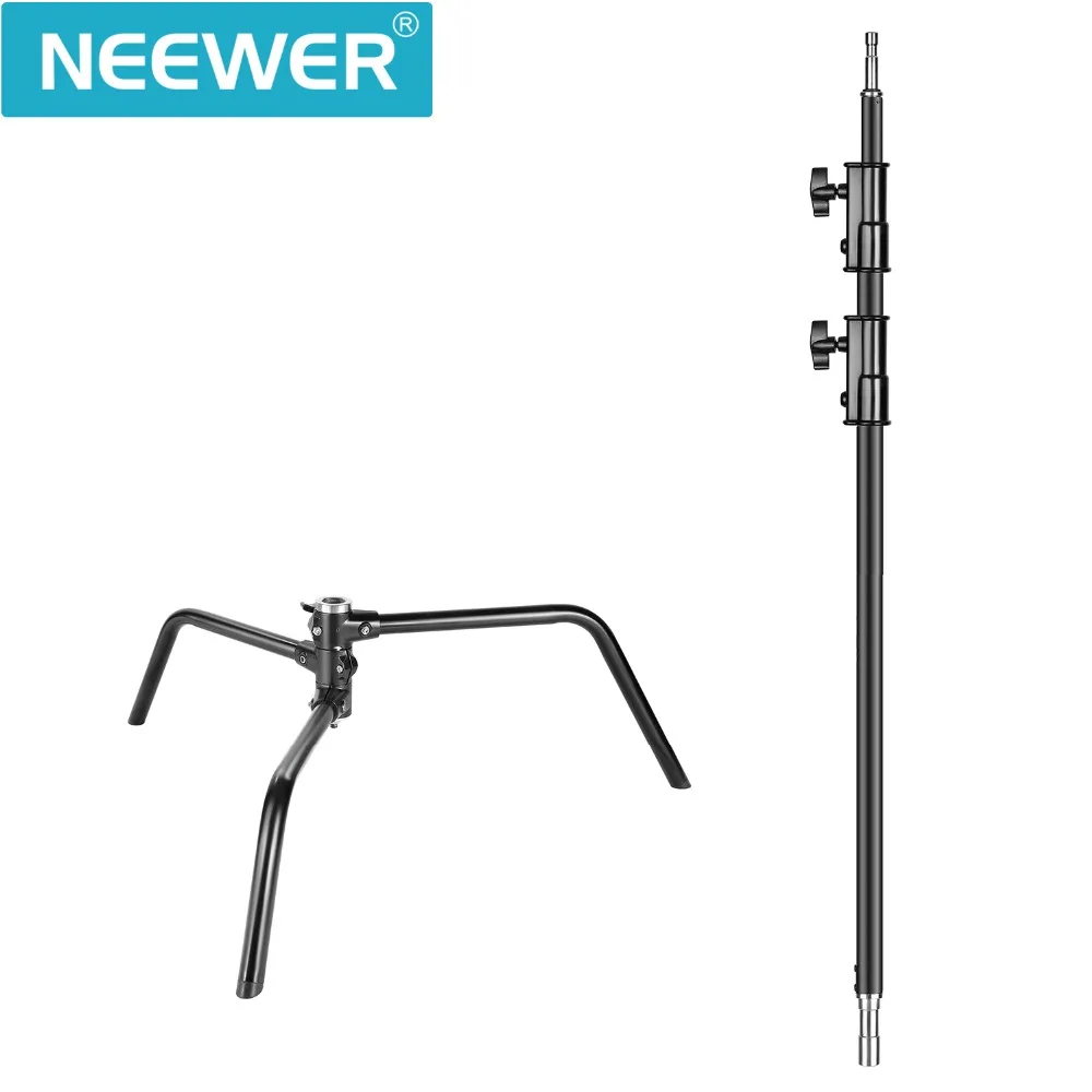 Сверхмощная легкая стойка Neewer со съемным основанием, 5-10 футов/1,6-3,2 метров, регулируемая C-стойка с 2 стойками для студийной фотосъемки, алюминиевый сплав, максимальная грузоподъемность 22 фунта