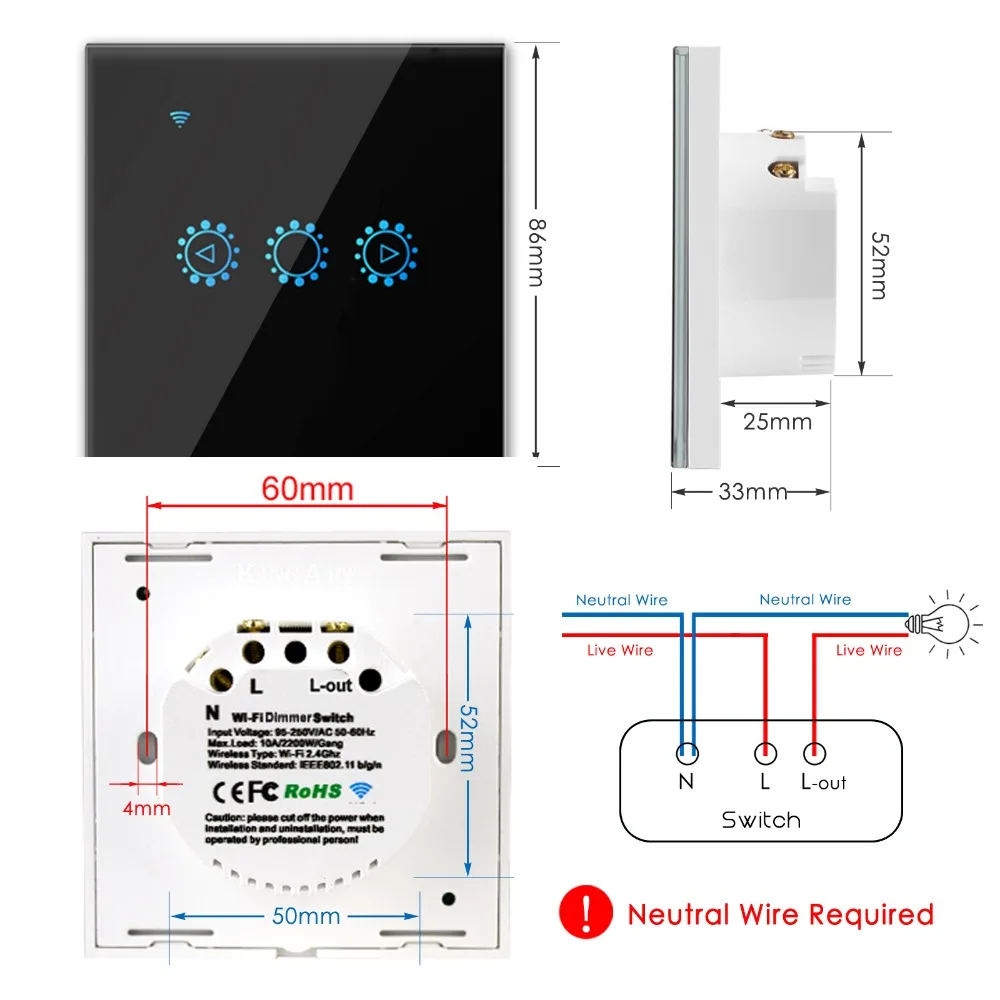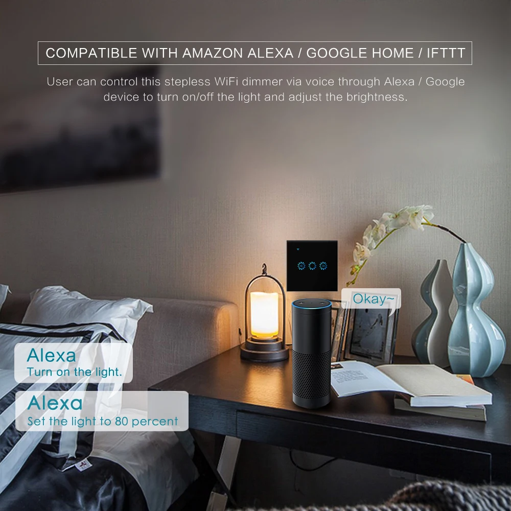 О функции затемнения, Этот выключатель является бесступенчатым переключателем затемнения, другими словами, светильник можно непрерывно менять. Вы можете изменить яркость в приложении или нажать на стеклянную панель напрямую. Не все лампы поддерживают функцию плавного затемнения, пожалуйста, убедитесь, что ваша лампа совместима.