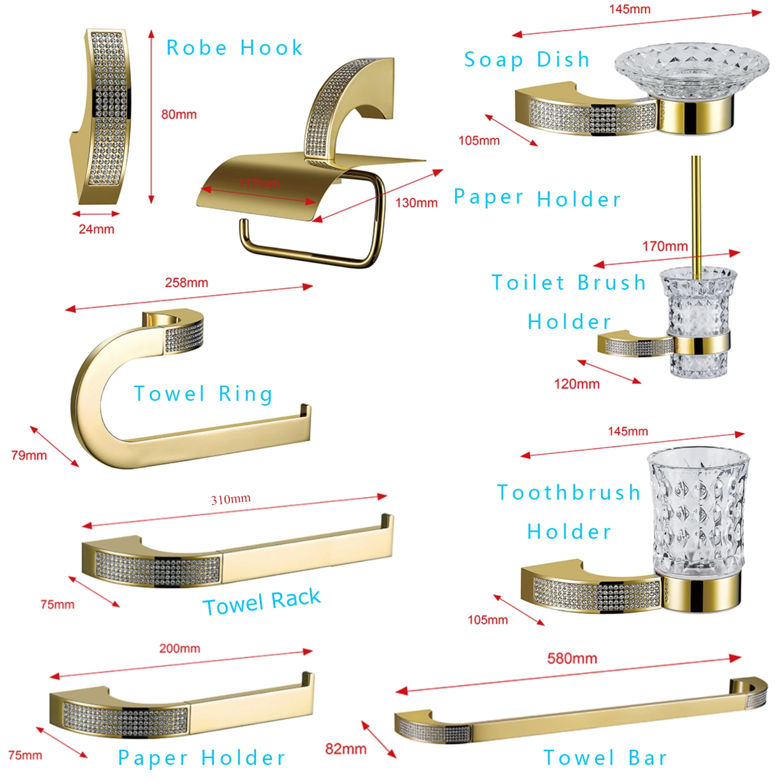Набор аксессуаров для ванной комнаты из чешского хрусталя, вешалка для полотенца, вешалка, полка, держатель для зубных щеток, аксессуары для ванной, золотохром