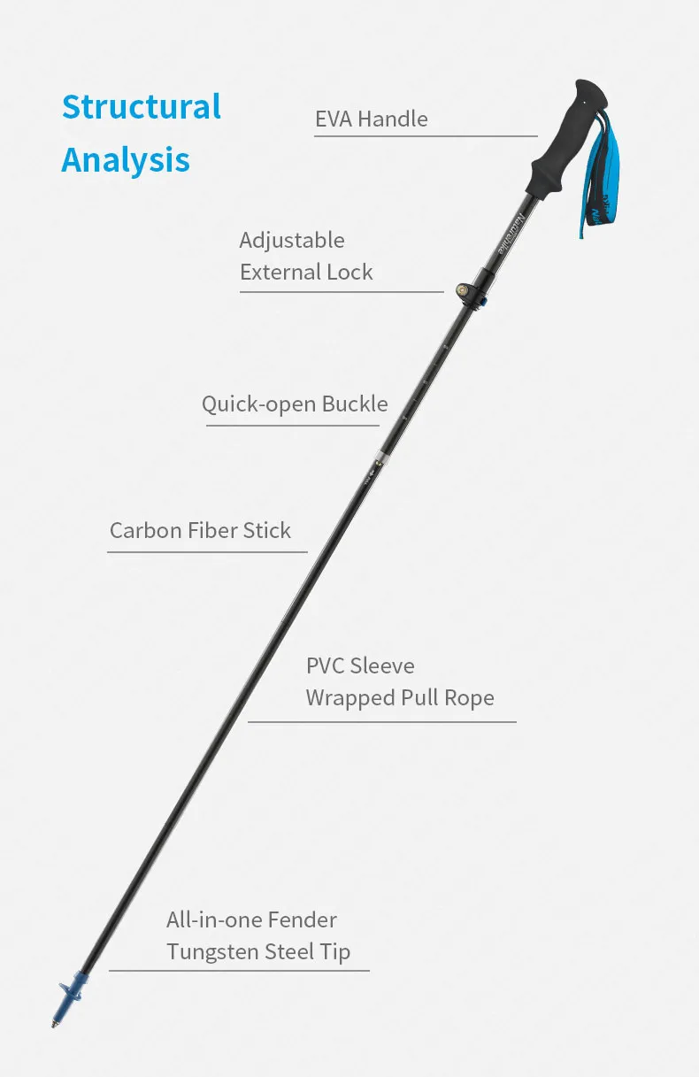Палка Naturehike 175 г из углеродного волокна, складная, 5 секций