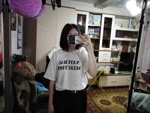 Офигенная футболка, беру второй раз, носить с чем угодно.Теперь у меня футболка и Эрика и Дилана.Колумбайнерам привет, остальным соболезную. Доставили как всегда быстро, все отслеживается.Размеры соответствуют, я 42 ношу размер, заказала xs мне свободно.Такой крой.Качество классное, очень приятная, легкая, единственный минус сильно мнётся.