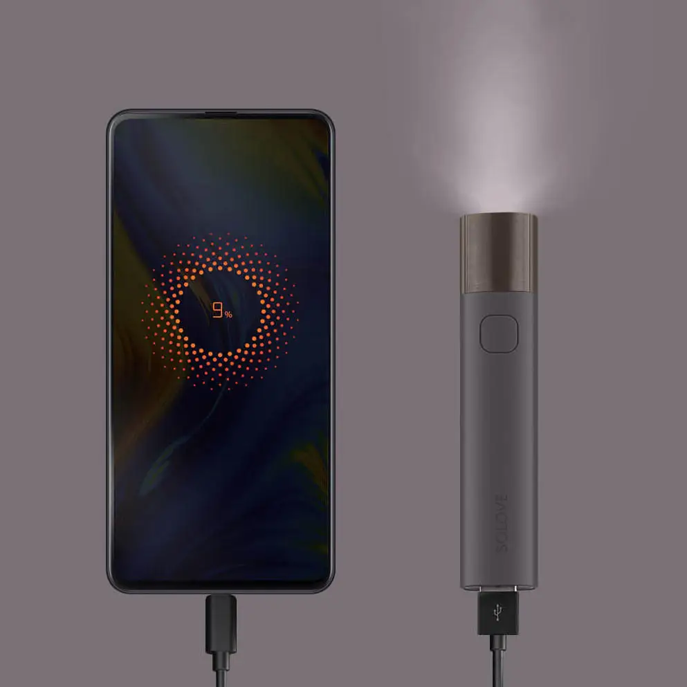 Оригинальный SOLOVE X3 USB Перезаряжаемый яркий фонарик EDC 3000 мАч Внешний аккумулятор мини светодиодный фонарь