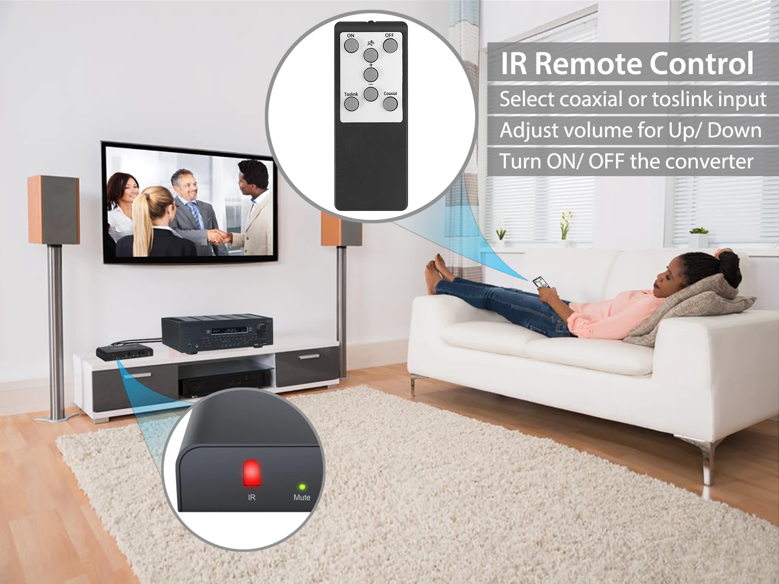 Это идеально для меня. Все соответствует описанию. Я могу контролировать громкость DAC с помощью пульта ДУ телевизора (LG) - Vol +-это кнопка Vol +, Vol-это кнопка назад. Лучше всего за эти деньги. Рекомендованный