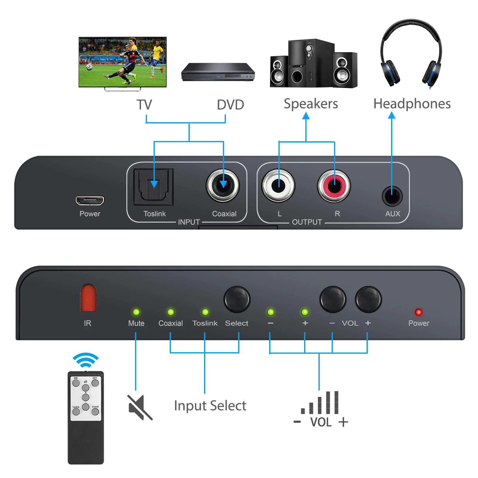 Аналоговый аудио конвертер Цифровая работа Идеальна при подключении к оптоволоконному и rca кабелю с усилителем дает хороший звук. Продавец честный Сделано со всей серьезностью.