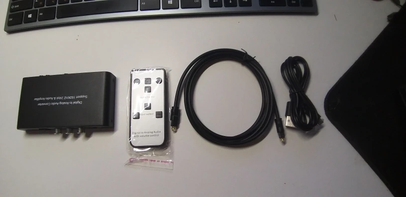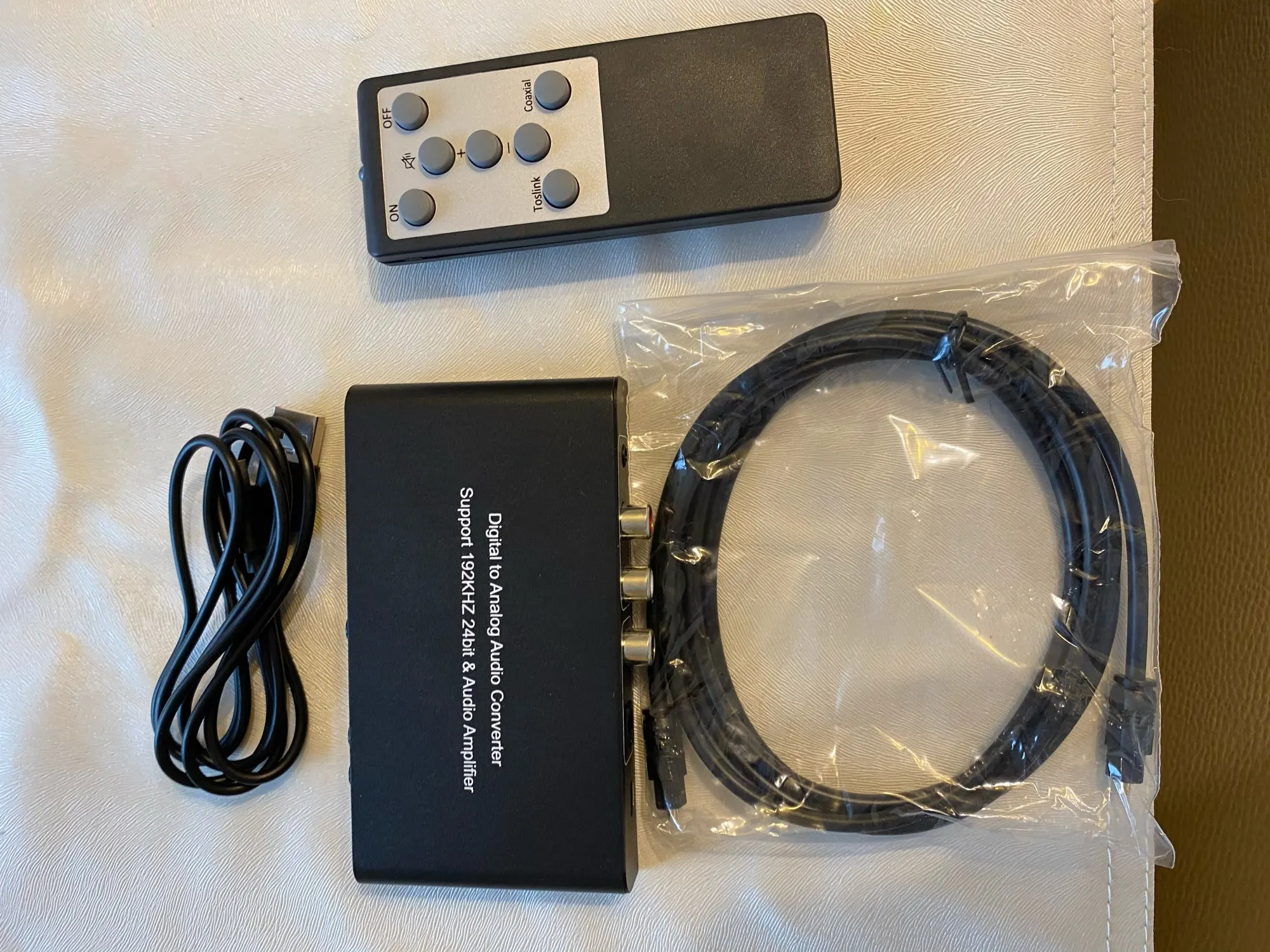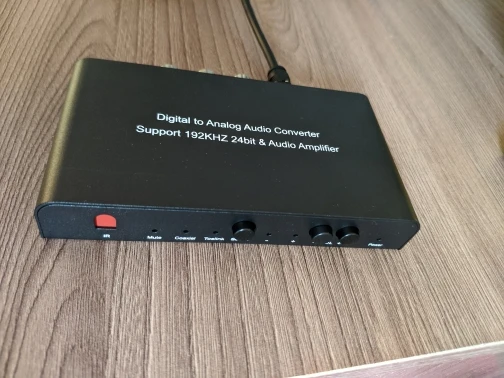 Устройство маленькое и симпатичное. В комплекте нет ни блока питания, ни переходника. Есть провод. После присоединения к зарядке 5Вт, приборчик включился. Все лампочки горят правильно и реагируют на переключения от пульта. Звука мне услышать не получилось. Только лёгкое шипение в наушшника. Хотя проводок из комплекта для sdif контакта горел красным цветом. В итоге прибор включен, но к эксплуатации не годен