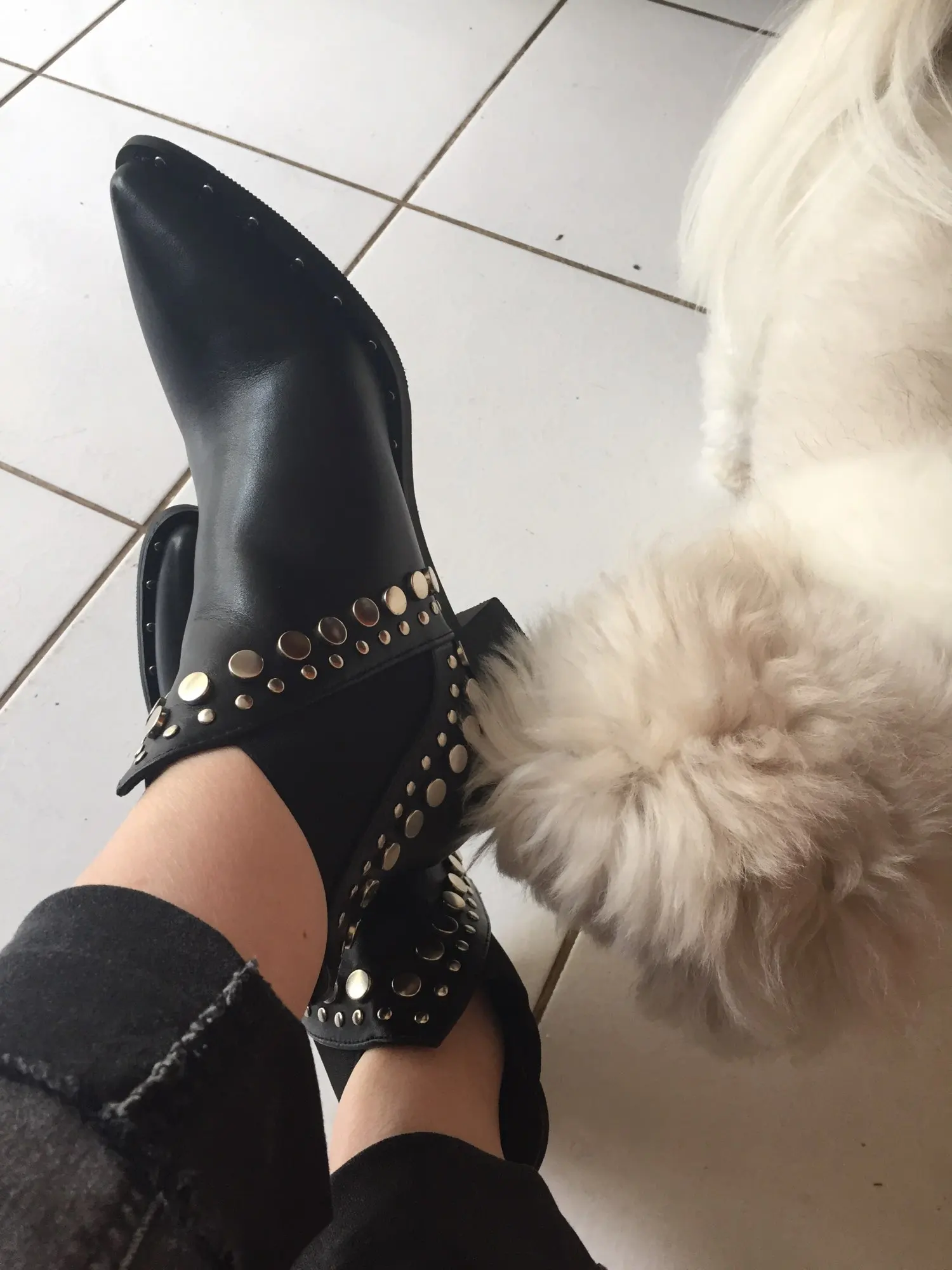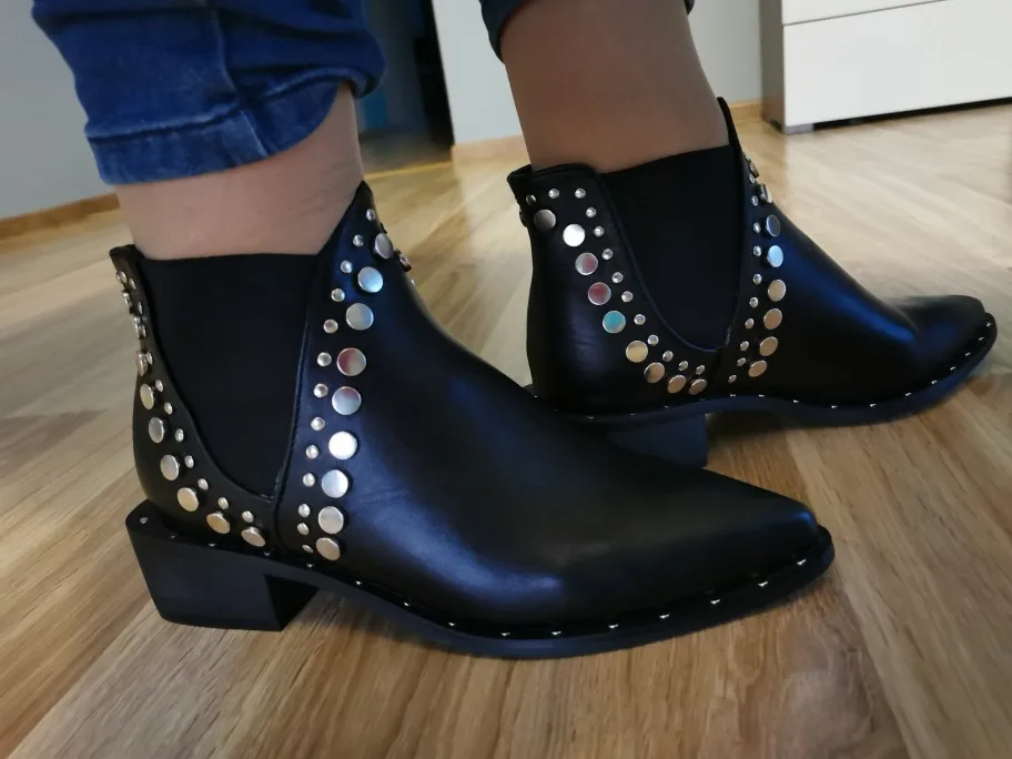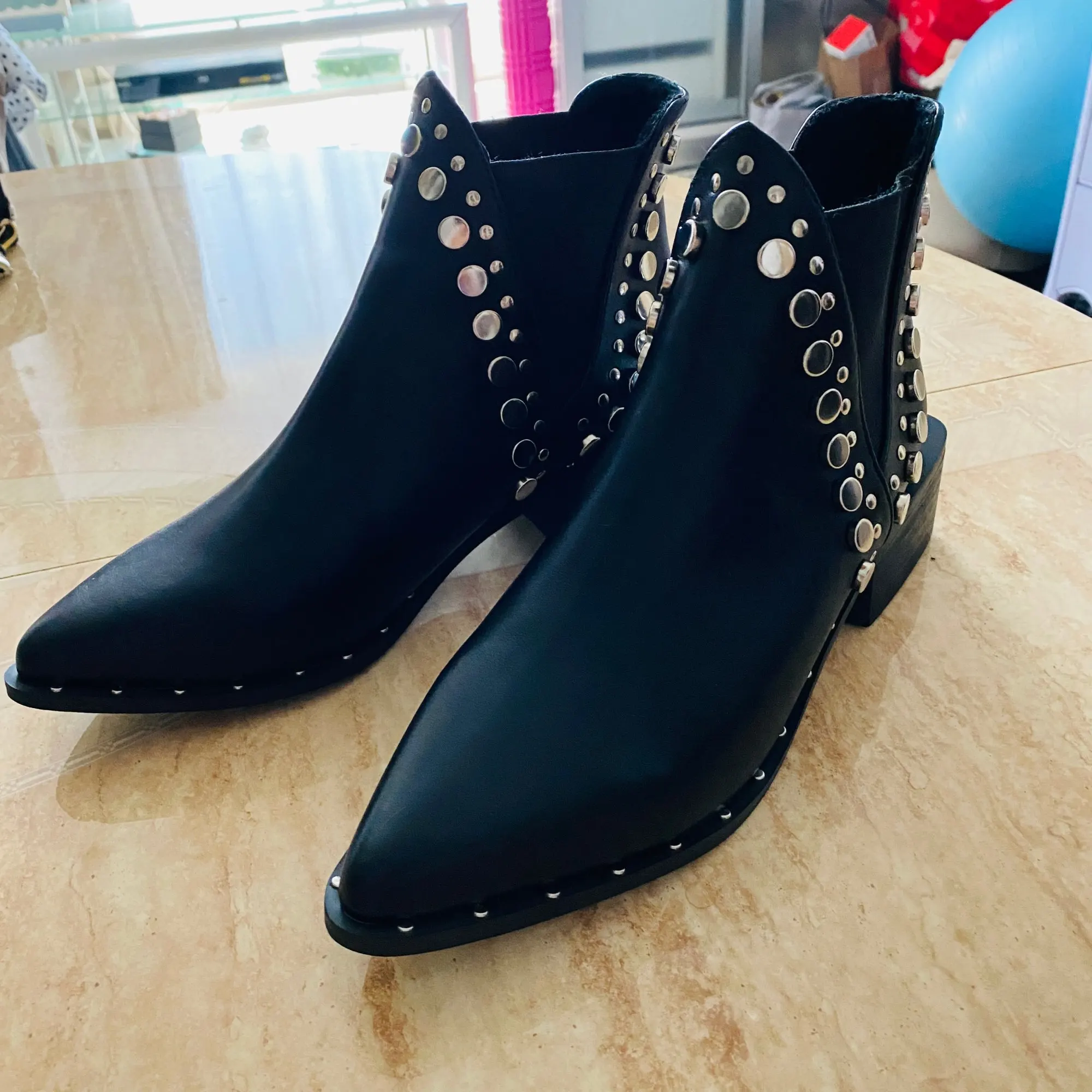 Женские ботинки из искусственной кожи, мотоциклетные ботильоны на толстом каблуке с заклепками, черные, размер 35-40, с шипами, украшенные