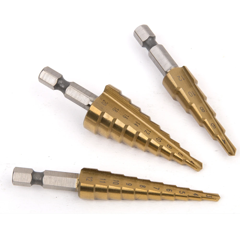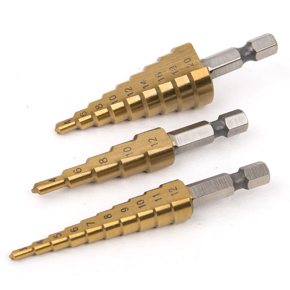 3 шт. быстрорежущая сталь титановые ступенчатые сверла 3-12 мм 4-12 мм 4-20 мм ступенчатые конусные режущие инструменты сталь деревообрабатывающий набор для сверления деревянного металла