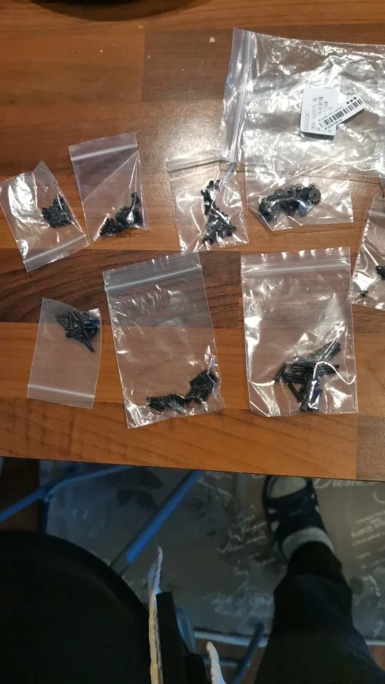 Винты в упаковке не маркируются. Теперь мне нужно измерить и пометить каждый из них...