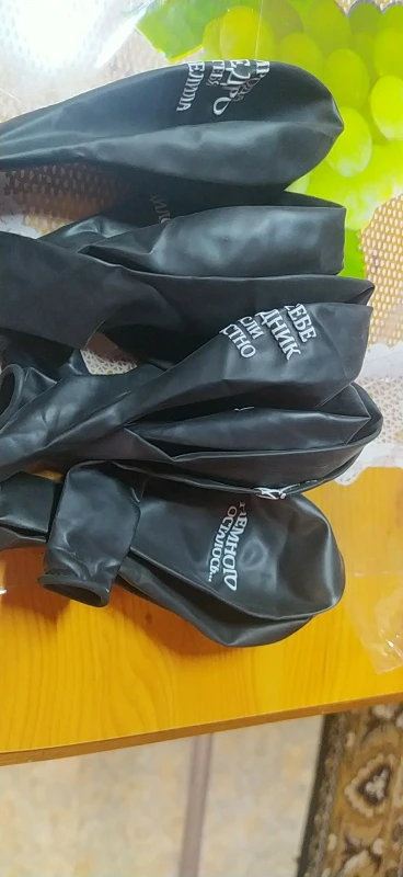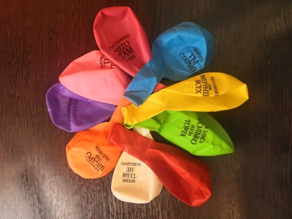Доставка быстрая. Надписи прикольные. Но сами шарики большими не надуть, сразу лопаются. А маленькие не очень эффектно смотрится