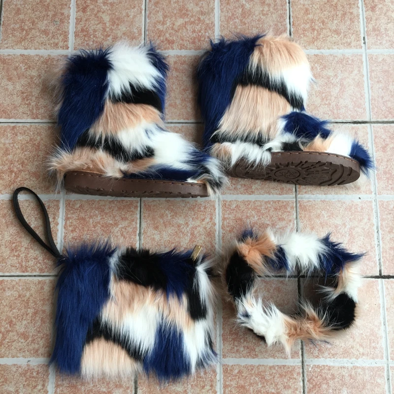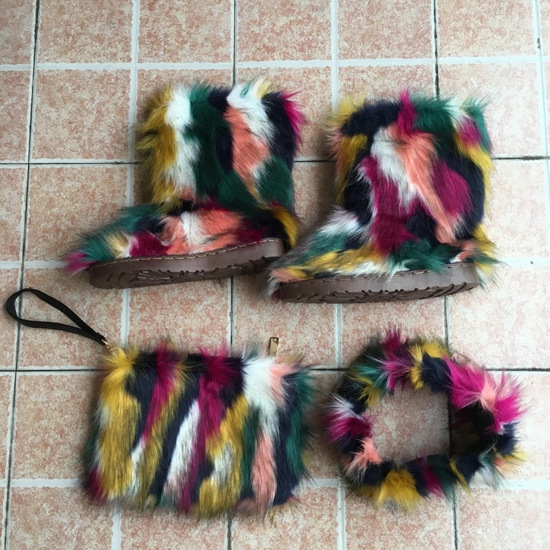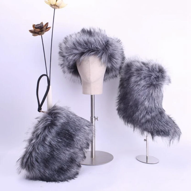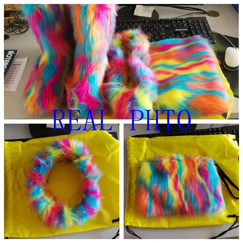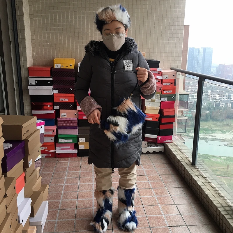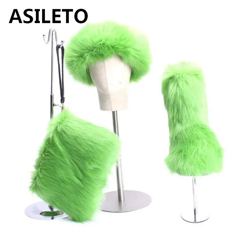ASILETO женская зимняя обувь, сапоги, пушистые натуральные настоящие волосатые кимоски, женские пушистые сапоги с перьями, для улицы, с сумкой, повязкой на голову T554