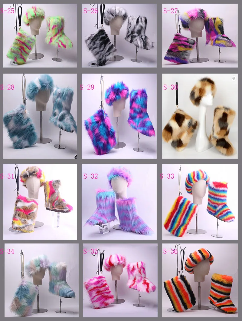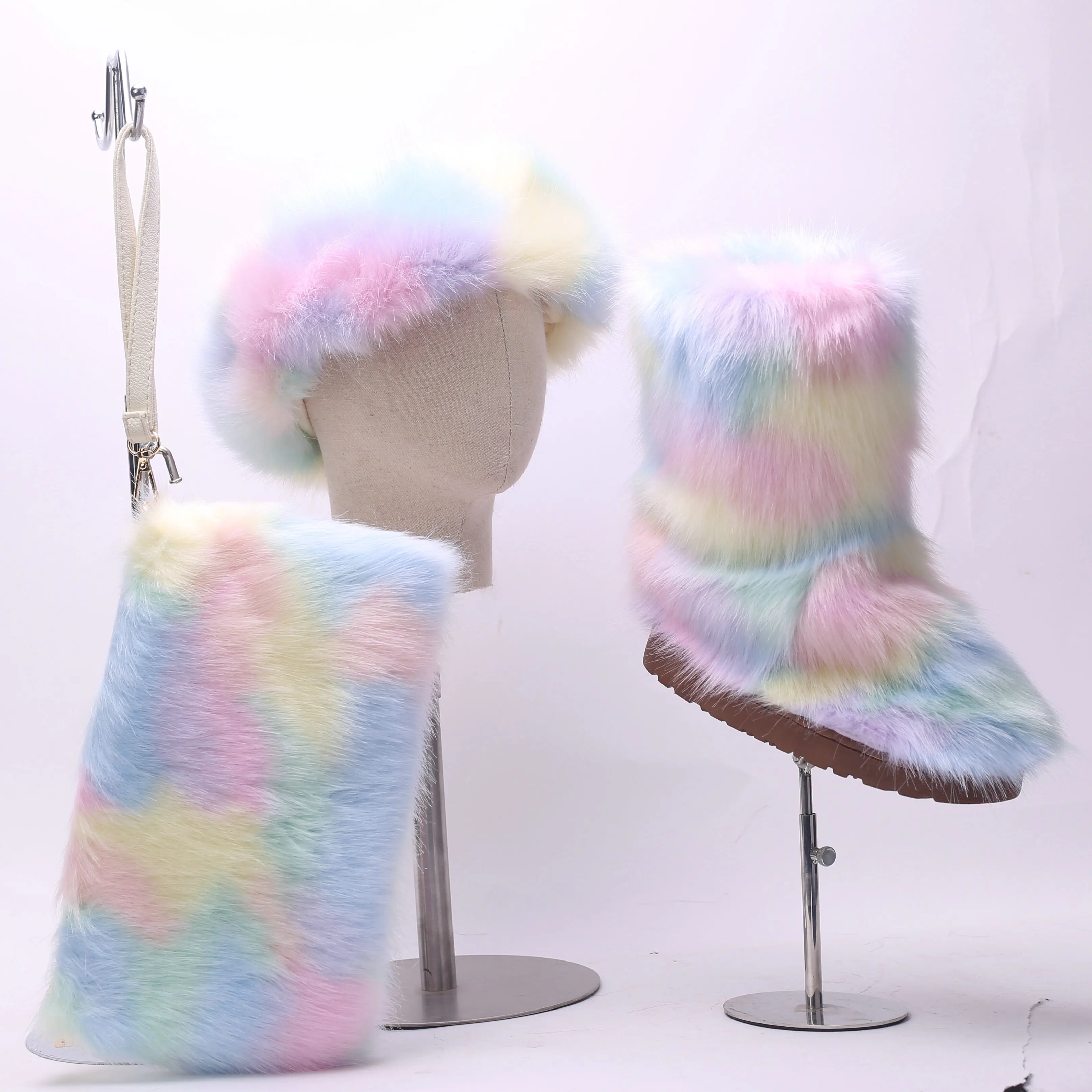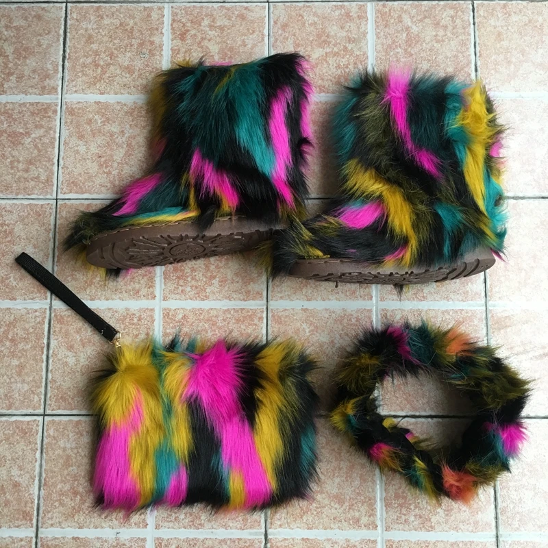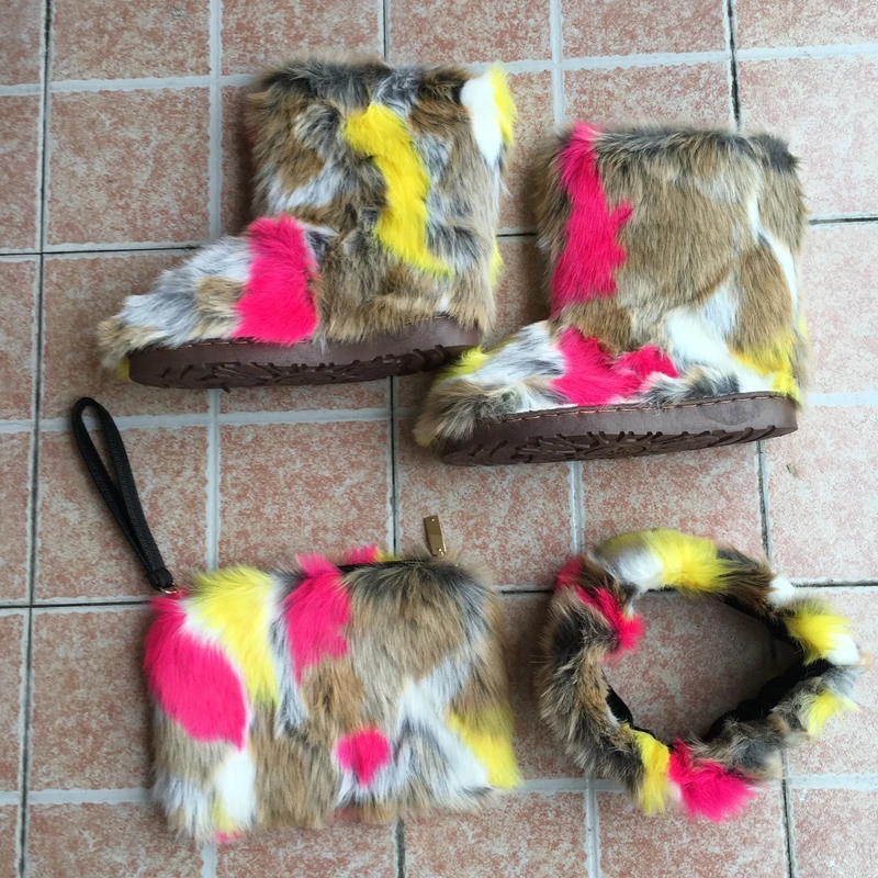 ASILETO женская зимняя обувь, сапоги, пушистые натуральные настоящие волосатые кимоски, женские пушистые сапоги с перьями, для улицы, с сумкой, повязкой на голову T554
