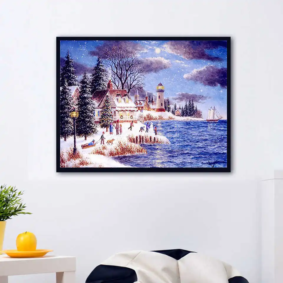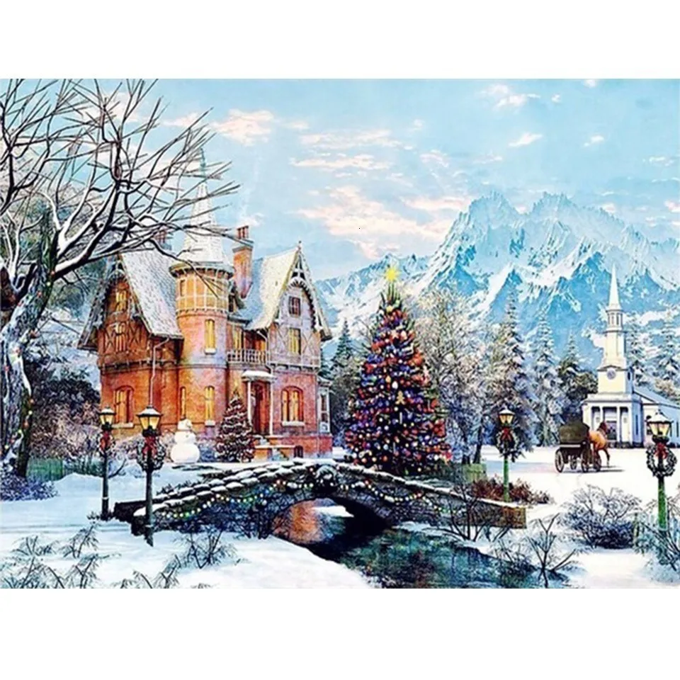 Алмазная вышивка Зимние декорации DIY Полная площадь сверла Алмазная картина Алмазная мозаика пейзаж снег Украшение дома