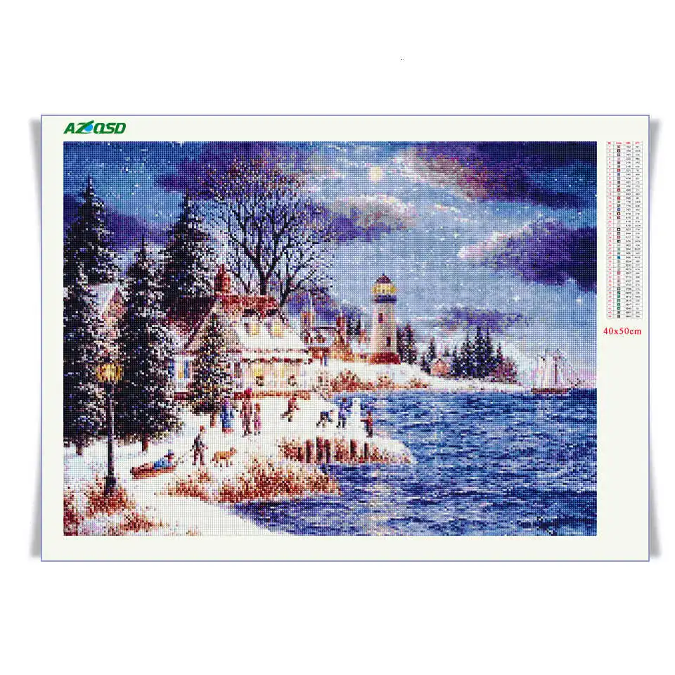 название продукта:AZQSD Алмазная Вышивка Зимний Пейзаж DIY Полный Квадратный Дрель Алмазная Живопись Алмазная Мозаика Зимний Снег Украшение Дома