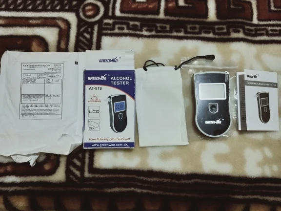 Алкотестер такой заказываю уже не первый. Подарил уже нескольким друзьям. Работает без проблем, показания соответствует тому, что на работе. В комплекте есть даже мешочек. 5 мундштуков в комплекте.