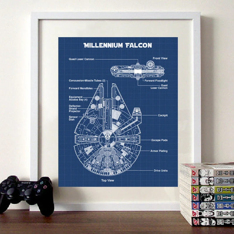 Схемная схема, художественный постер, холст в стиле Звездных войн, принты Millennium Falcon, Картина на холсте для мальчиков, комната, научная фантастика, Настенный декор