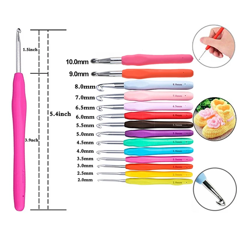 1 шт крючком иглы крюк 18 размеров 1,0 мм-10,0 мм Мягкие Ручки вязания спицы вплетать в пряжу спицы крючком для любой пряжи