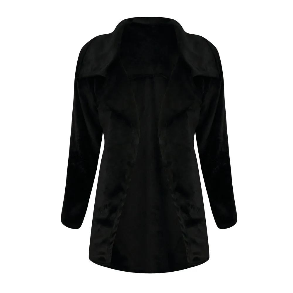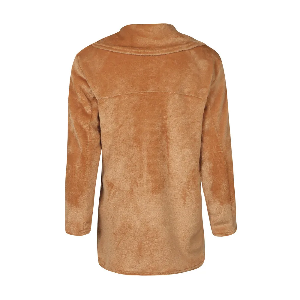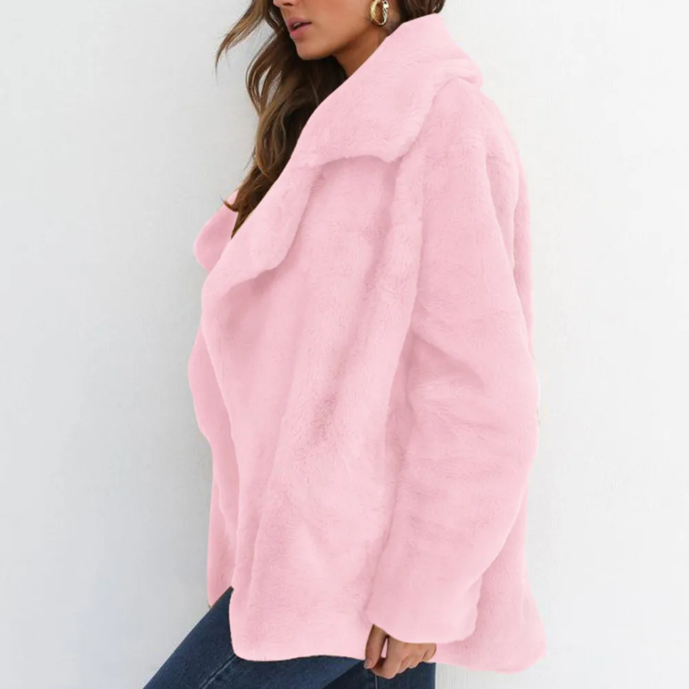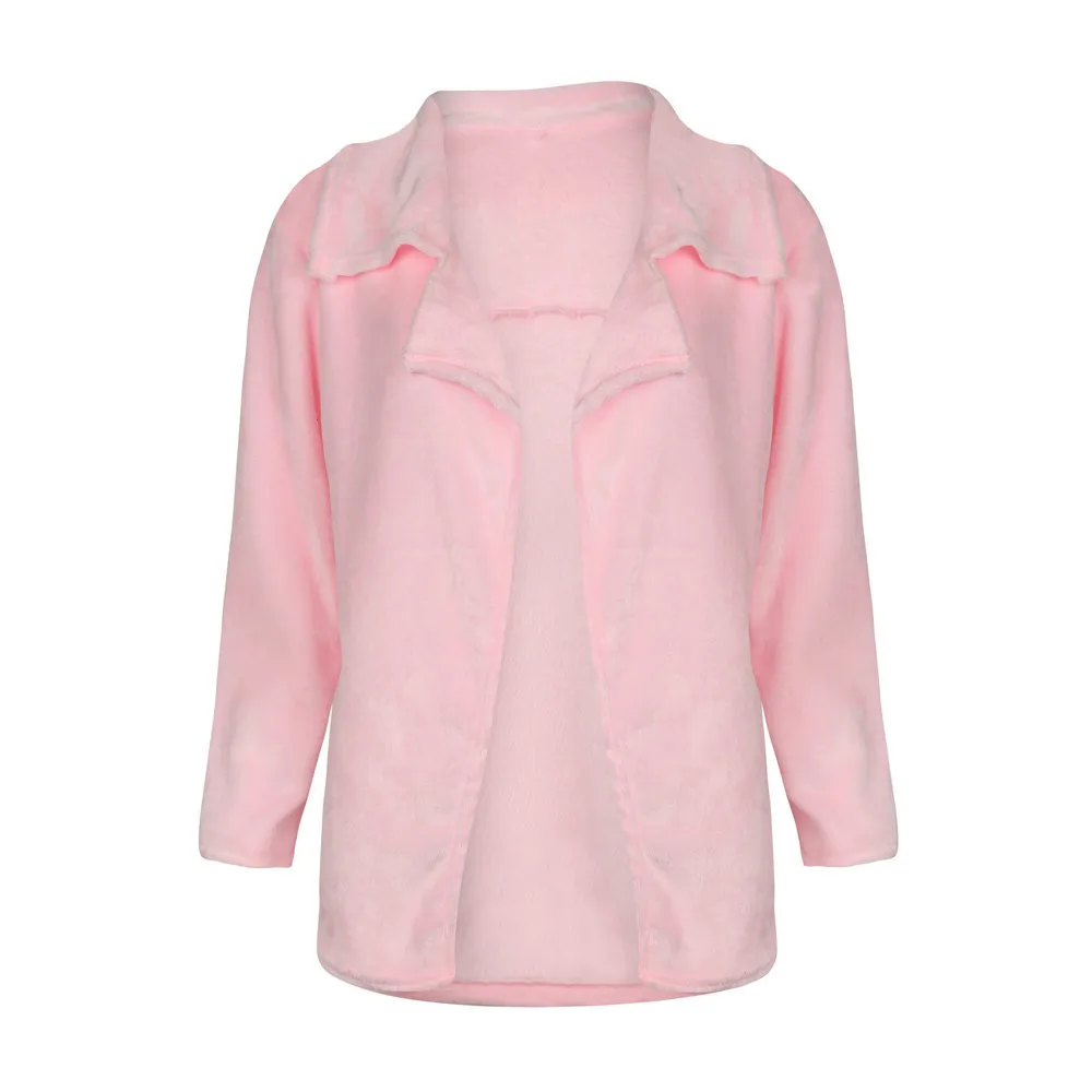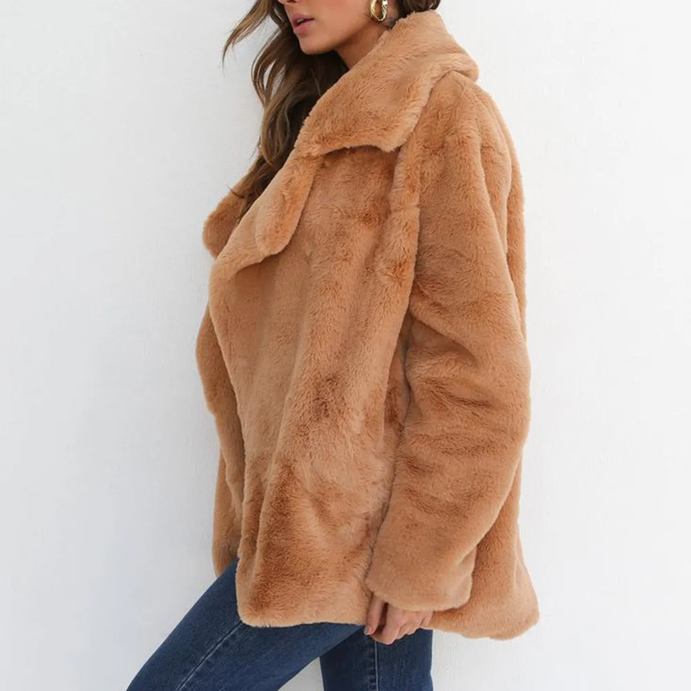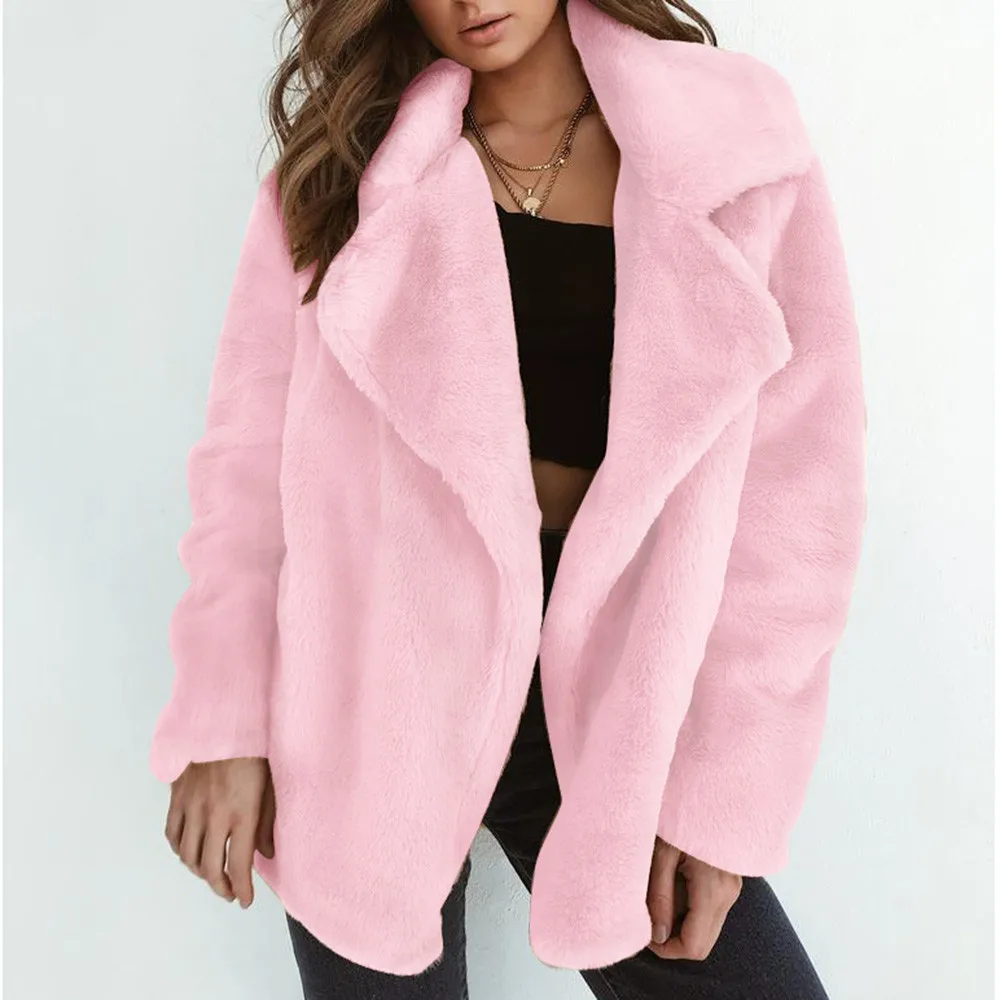 KLV Женское зимнее пальто из искусственного меха, теплая однотонная верхняя одежда с отложным воротником, Свободное пальто с длинным рукавом, коричневого, розового и черного цвета, z1120