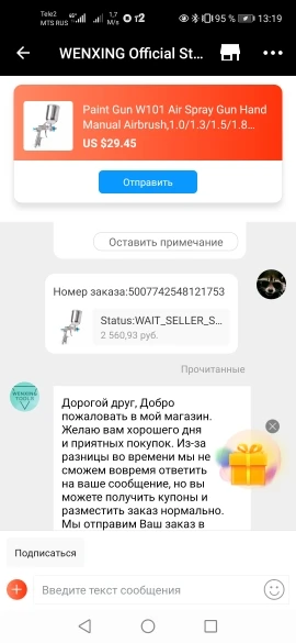 Продавец хитрожопый, заказывал краскопульт с доставкой из России,он не предупредив то, что нет на складе в наличии (хотя кнопка для заказа активна) отправил из Китая и ничего не сказал.Получив товар, открыл его и там оказался пластиковый бочек (я заказывал с железным). Продавец ответил на то, что он отправил из Китая просто: "Извини". А про пластиковый бочек говорит :"какая разница каким пользоваться",могу вернуть разницу 200р. Открыл спор, в итоге с привлечением алиекспресс отсудил 1000р. НЕ СОВЕТУЮ ЗАКАЗЫВАТЬ У ЭТОГО ПРОДАВЦА, ЛУЧШЕ ПОИЩИТЕ ДРУГОГО!