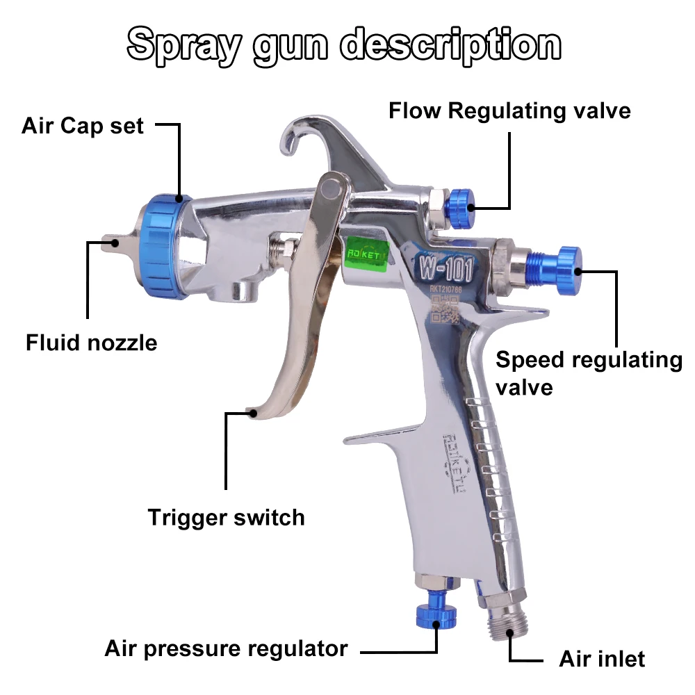 Аэрограф ручной W101 с пластиковым баком 400CC для распыления краски, Краскораспылитель японский качественный, 1,01,31,51,8 мм