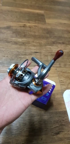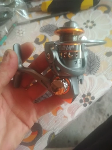 Миниатюрная катушка, которая держится на ладони и которая действительно хорошо поворачивается. Я ожидал что-то гораздо больше гаджета по этой смешной цене! Это именно тот товар, который был доставлен без обмана. Действительно впечатлен внешним видом и качеством отделки. Я купил его со второй большой на LINNHUE, чтобы оснастить короткий трость UL для моего 10-летнего сына, который начинает форель. Соотношение не очень быстрое, но оно в любом случае работает. Это все алюминий, за исключением пластиковой тормозной кнопки. 140 гр. по шкале! В магазинах такого типа катушки не было. Поставляется в картонной коробке, 15 лет во Франции, я получил в подарок 100 м оплетка x4 0,20 мм, которая сделает хорошую подложку на большой мельнице. Спасибо! Дети друзья будут завидовать... Фотография, сделанная рядом с my daiwa crossfire 2500 LT, которая была самой маленькой из моих мельниц...
