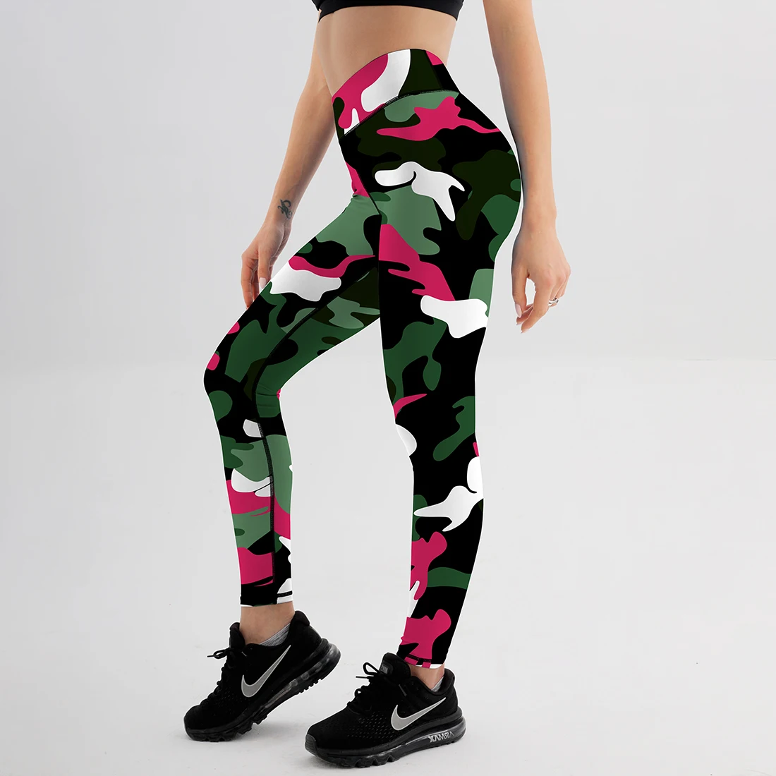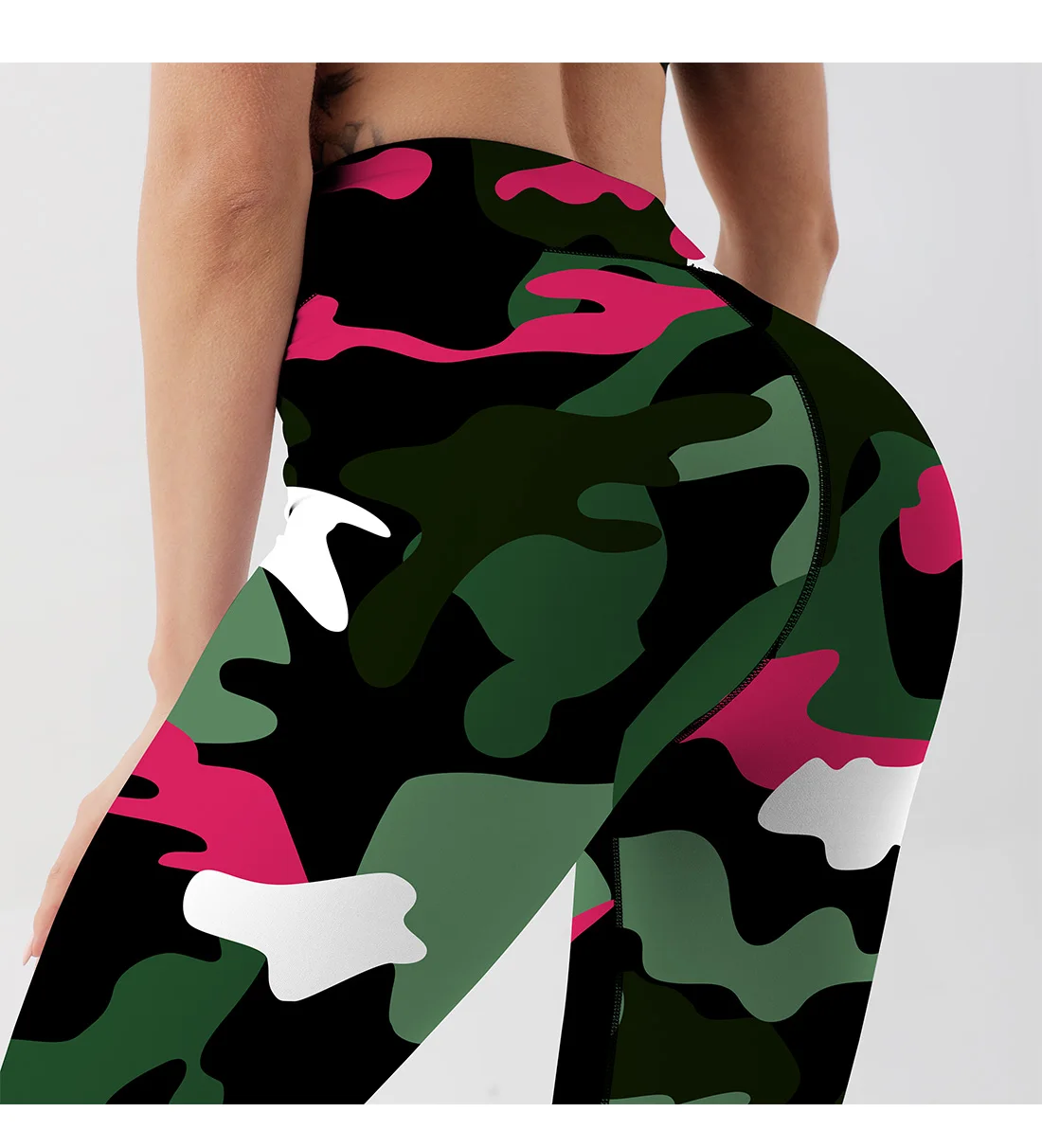 Леггинсы женские спортивные с камуфляжным принтом, с высокой талией, пуш-ап
