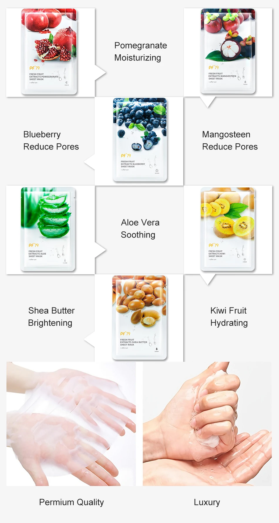 PF79 уход за кожей лица шесть фруктов маска с маслом Ши мангостин черника гранат киви Фрукты алоэ лист маска для лица маска