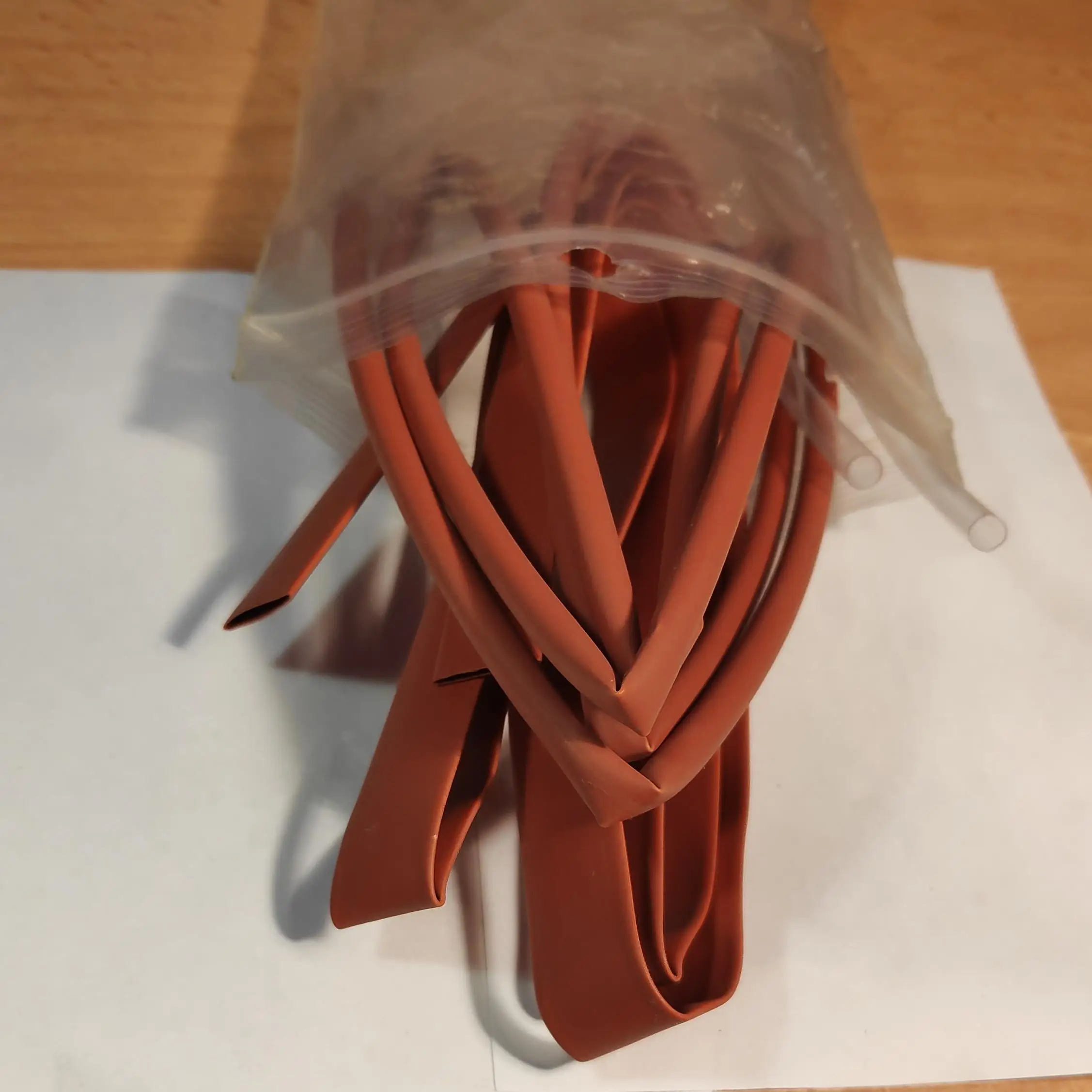 Трубка хорошего качества, но размер немного не соответствует, трубка с маркировкой 7 мм, по факту ДО усадки 7.8, ПОСЛЕ усадки 3.9, это стоит учитывать. Толщина стенки 0.5 мм, трубка прочная.