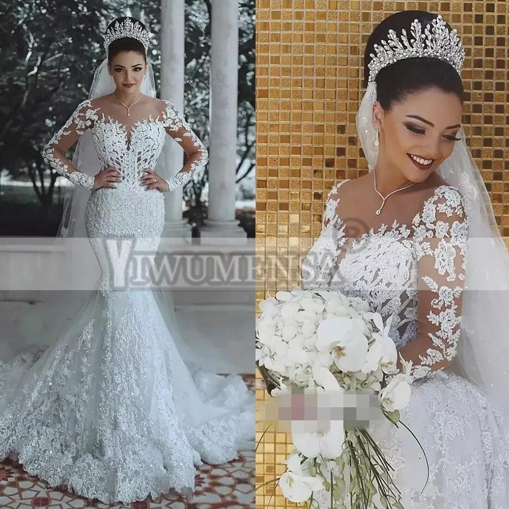 Женское свадебное платье с юбкой-годе, длинным рукавом