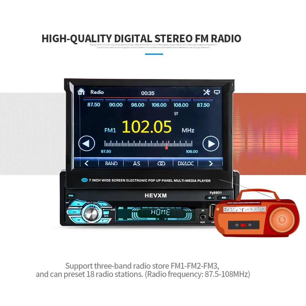Выдвижной сенсорный экран HD 7 дюймов, 1 DIN, стерео, автомобильное...