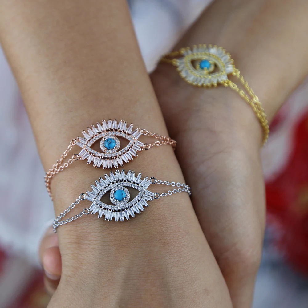 Турецкое ожерельебраслеткольцо от сглаза, выложенное синими бусинами и белым кубическим цирконием для женщин, свадебный подарок, новый летний стиль 2021