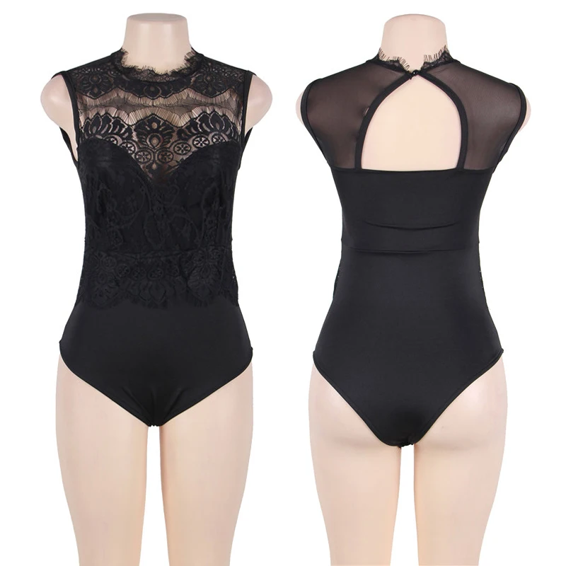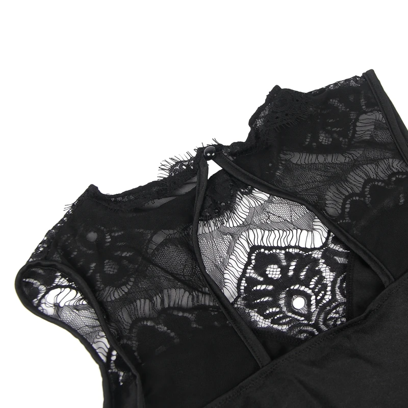 Сексуальная Женская одежда Ohyeahlady без рукавов, Женское боди, топы, боди с высоким воротником, уличная одежда, Кружевное боди с открытой промежностью