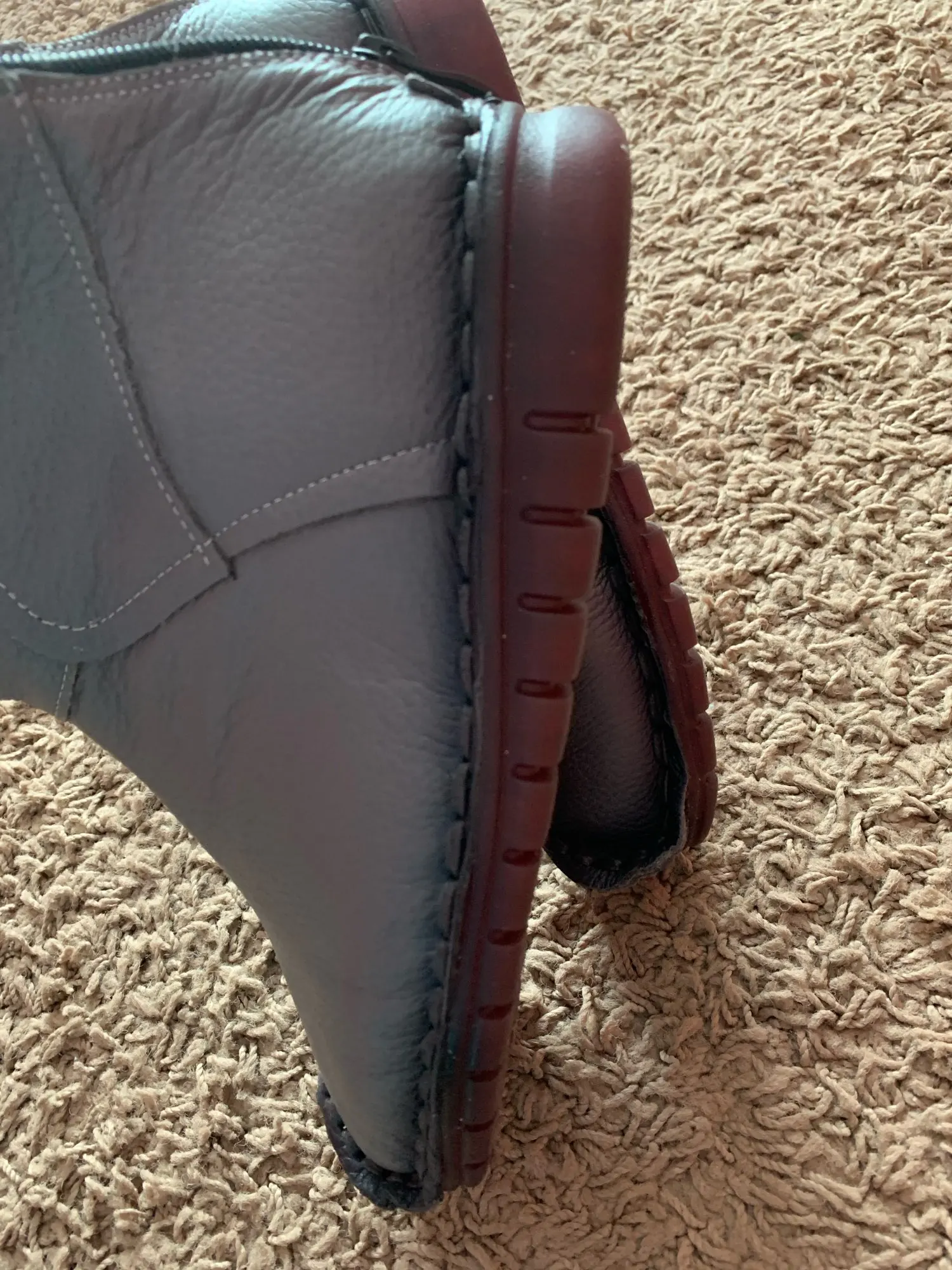 не уверена, что это кожа - но при такой цене меня абсолютно устраивает внешний вид и удобство. Необычные, очень легкие и комфортные. Купила на зиму для авто - езжу вторую неделю, ногам тепло и педали чувствую :) очень довольна!