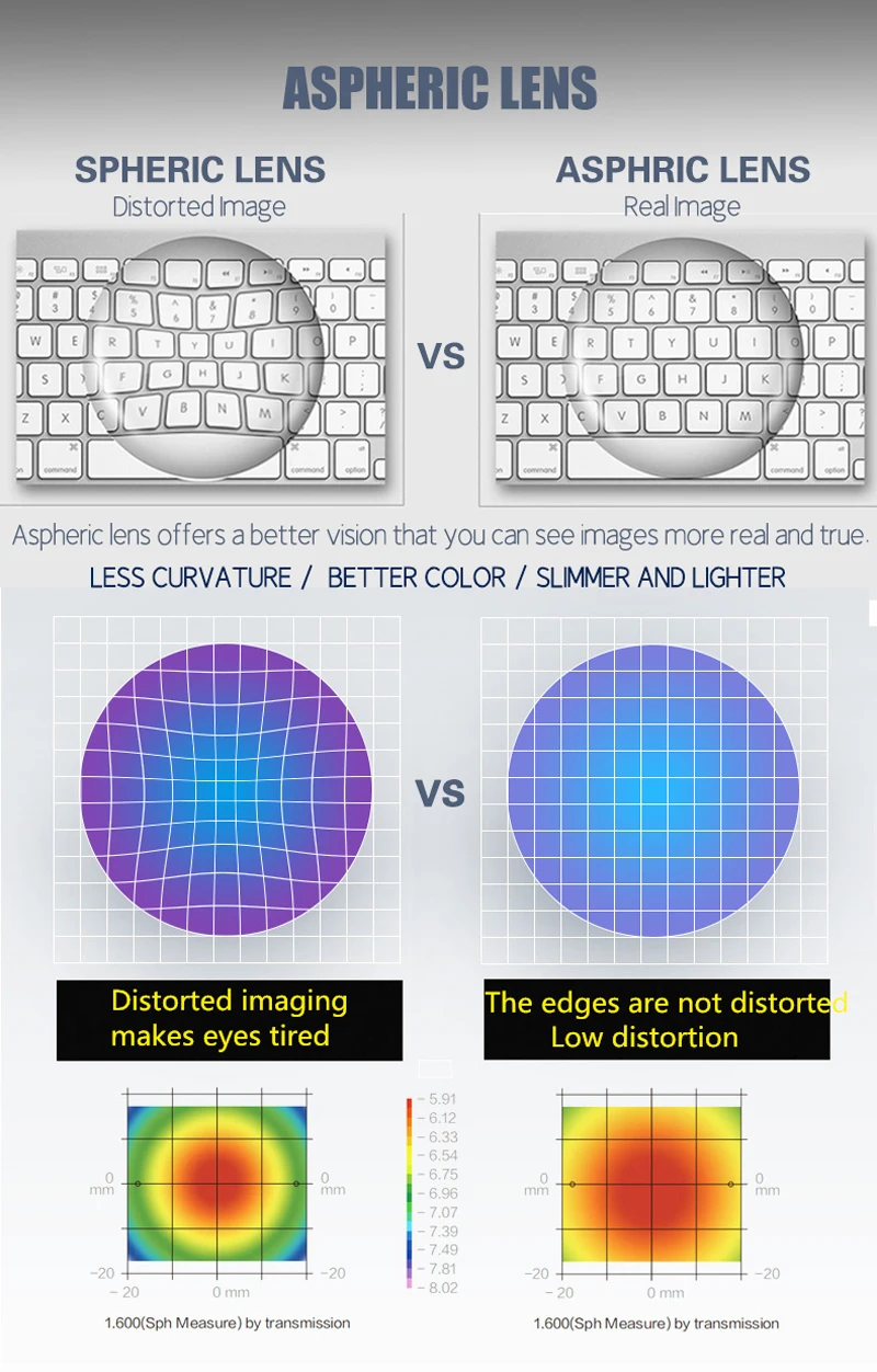 Хорошие асферические линзы с покрытием и отполированными краями.