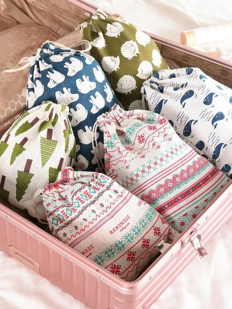 Женская дорожная сумка из хлопка и льна, портативный органайзер для хранения одежды на шнурке, косметичка для девочек, сумочки для обуви и туалетных принадлежностей