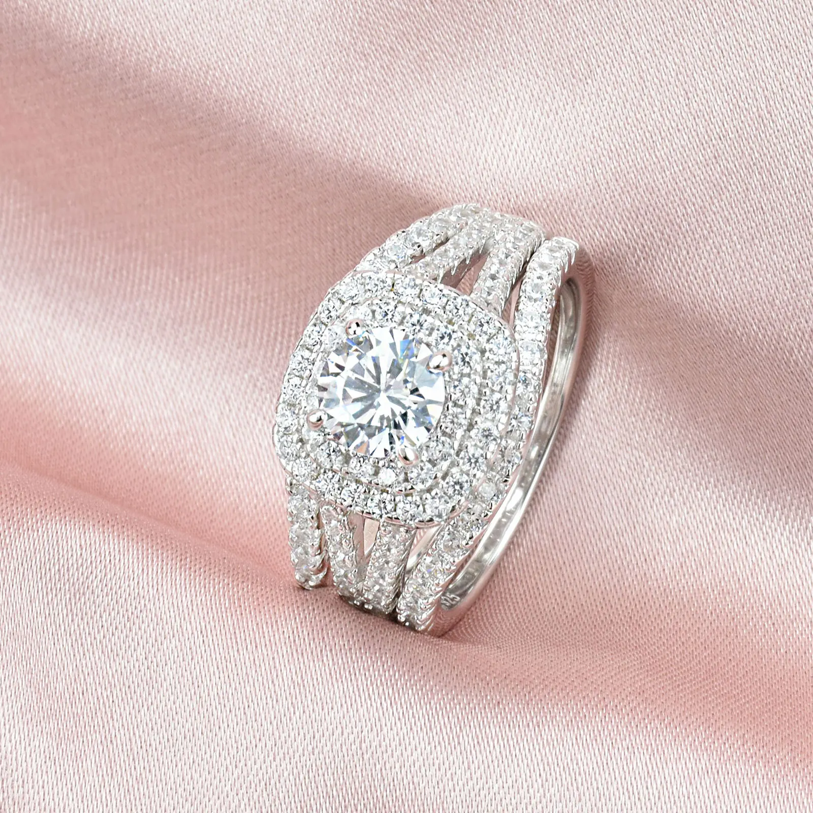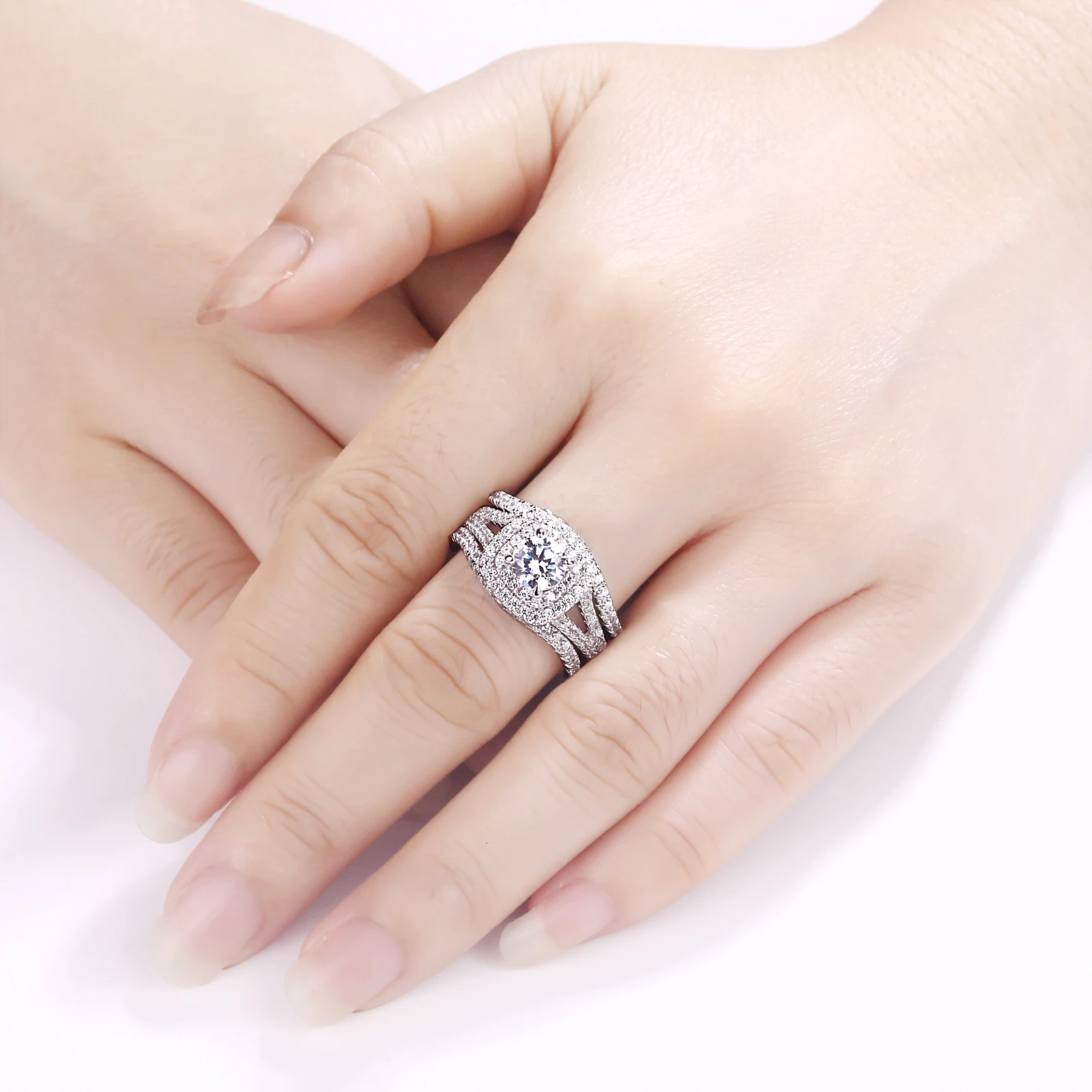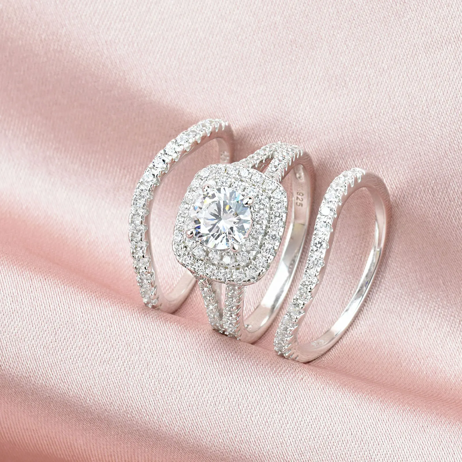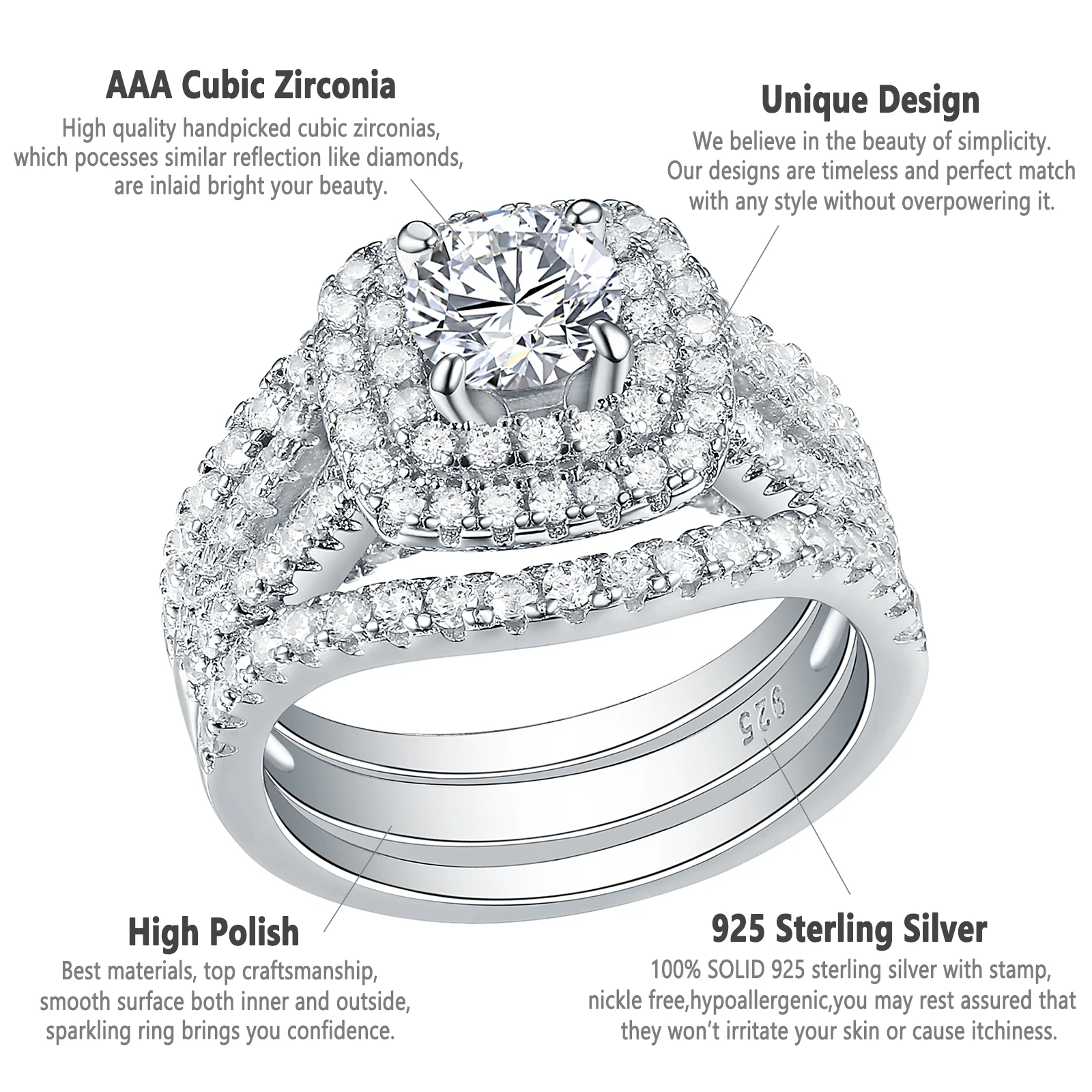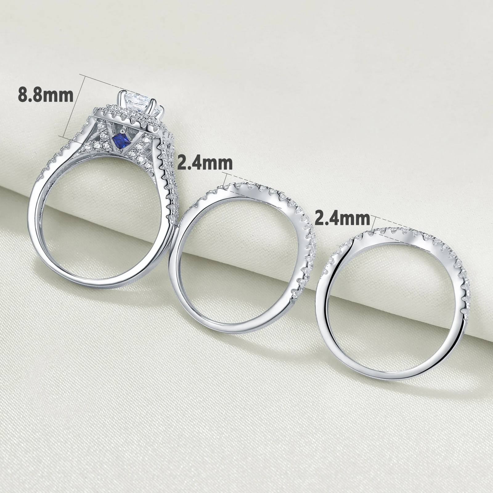 Женское Обручальное Кольцо Newshe, обручальное кольцо из стерлингового серебра 925 пробы с синими боковыми камнями AAAAA, 2 карата, комплект из 3 предметов