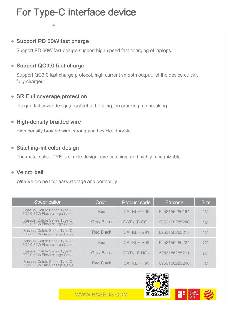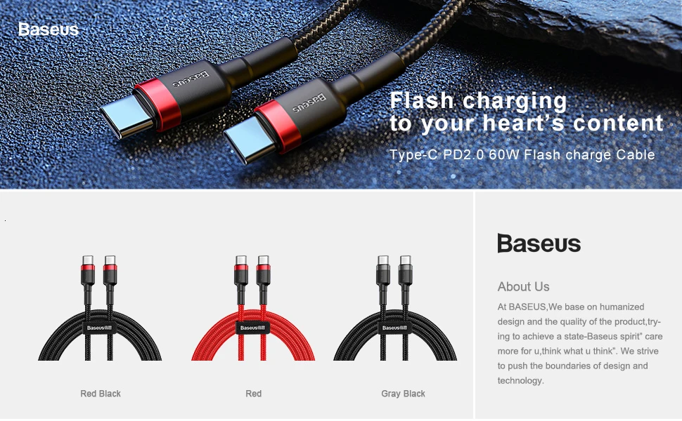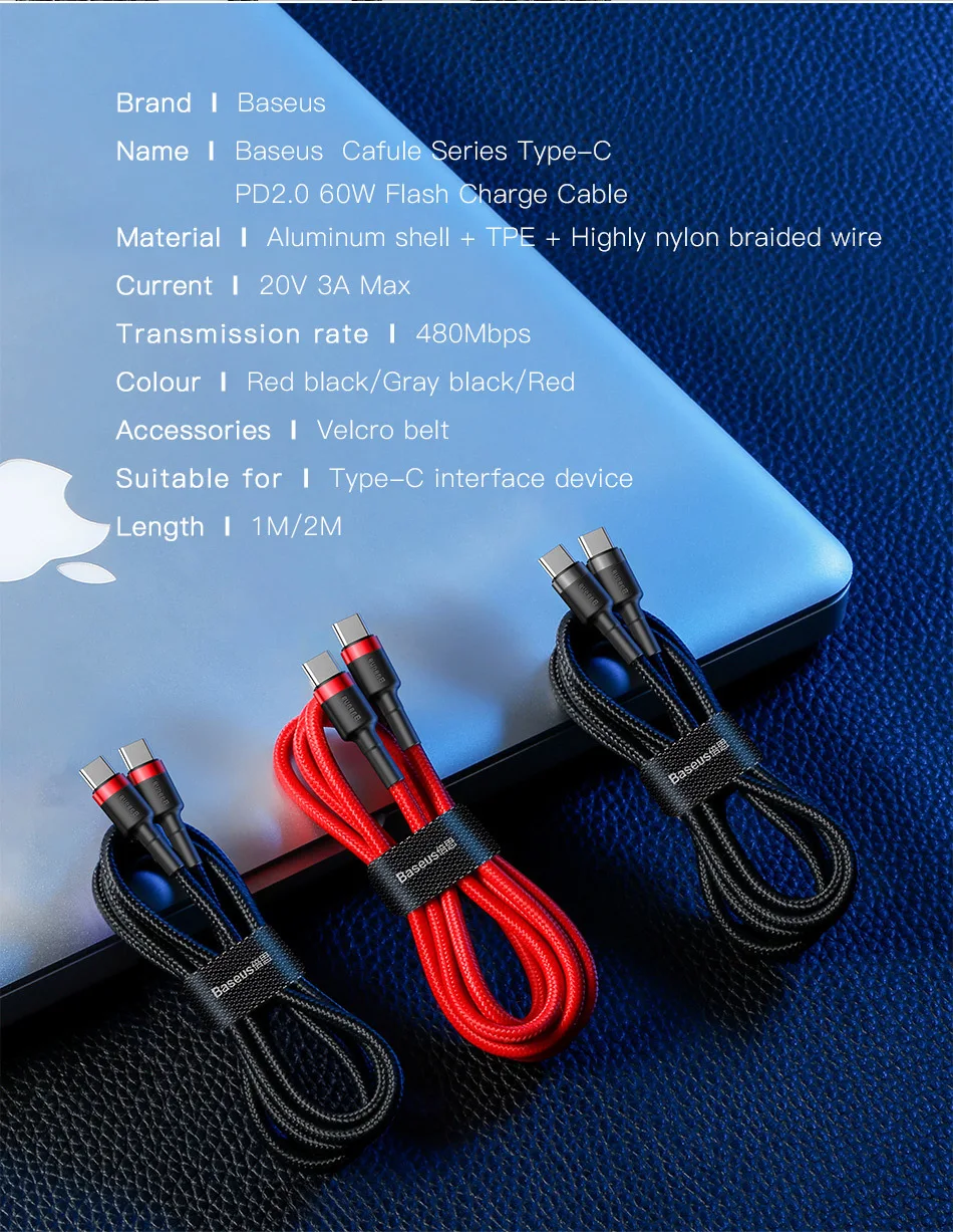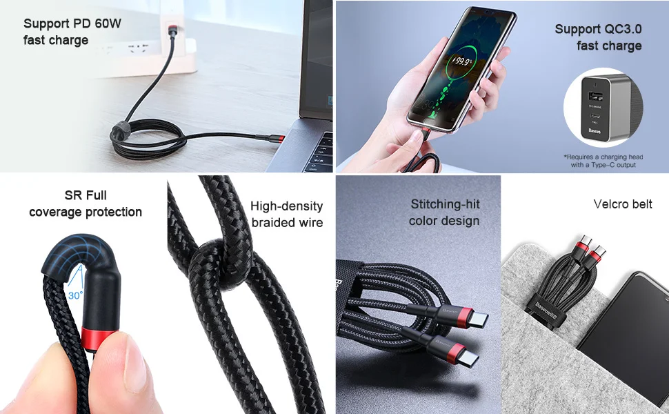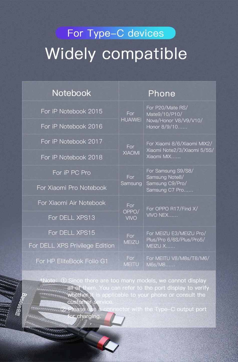 Кабель Baseus USB-CType C для Redmi K30, Note 8 Pro, Samsung S10, 4,0, с поддержкой быстрой зарядки USB-C