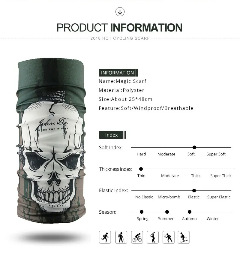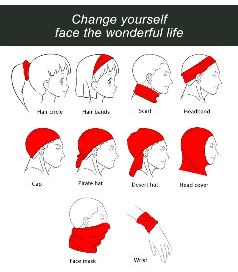 Двусторонняя трубчатая конструкция, которую можно носить разными способамиДышащие и быстросохнущие материалы дольше сохраняют ткань в чистоте и предотвращают рост бактерийБесшовный дизайн сохраняет ткань эластичной и более удобной в носкеУниверсальный дизайн для защиты от УФ-лучей и от укусов комаровФункция: шарф/повязка на голову/чехол с песком без карниза/шапка/карман/Пиратская шапка/браслет/вытирать грудь/юбку и т. д.Используется для Лыжная повязка на голову/платок для бега/для занятий спортом/пеших прогулок/скалолазания/тенниса/пеших прогулок/езды на велосипеде.