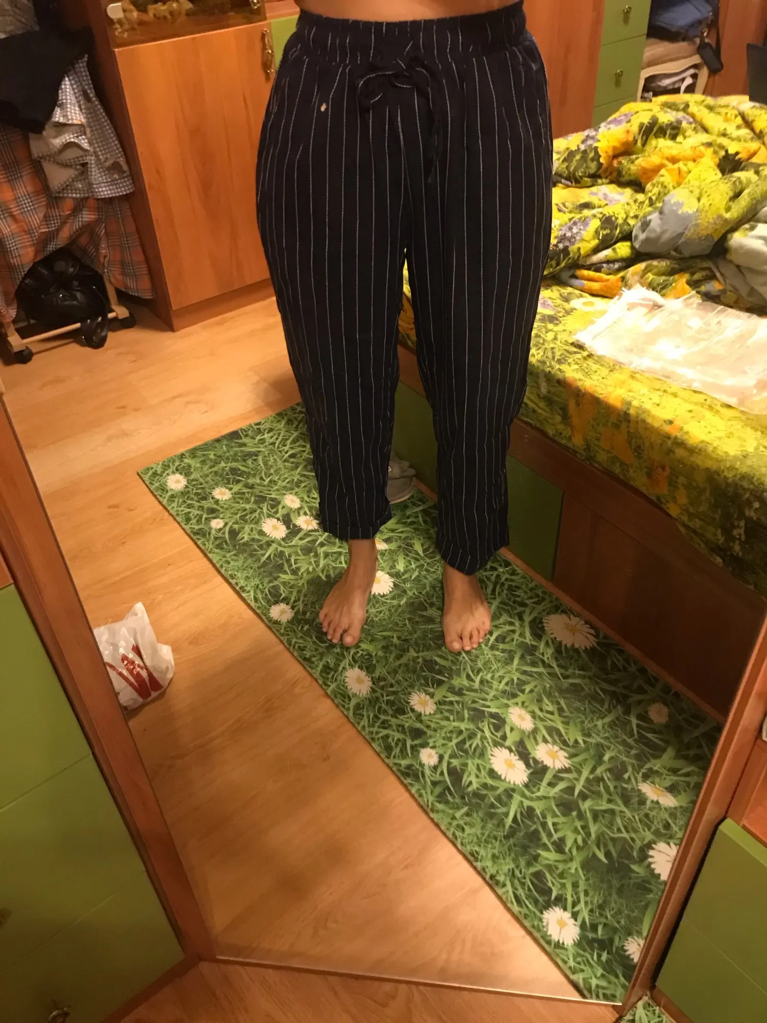 Кому как, а мне шаровары очень понравились, по отзывам знала, что они легкие, такие и хотела, весна-лето, пошив аккуратный, на поясе резинка и веревочка-регулировать можно, свитер можно заправить и навыпуск, комфортные, брала синие размер М дочке в школу на рост 160 от 66 об 85, отлично подошли-фото 1, решила на себя прикинуть фото 2 на рост 168 от 80 об 94, мне в талии туговато, а по росту тоже бы сошло)))в общем, себе заказала чёрные размер XL, думаю самое то будет, доставка ровно 10 дней))
