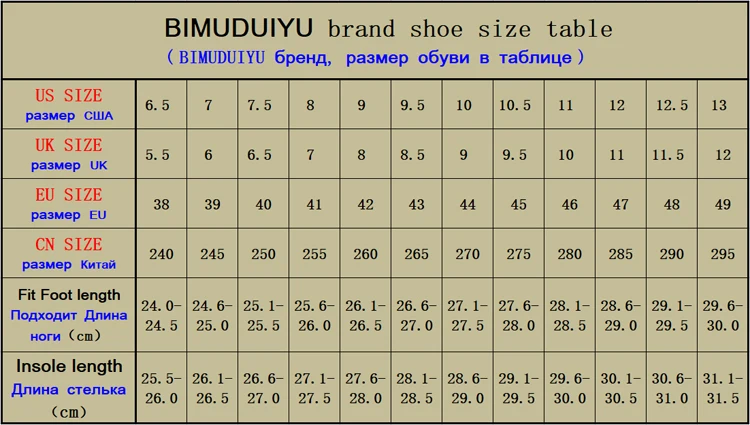 Пожалуйста, не стесняйтесь связаться с нами, если у вас есть какие-либо вопросы. Мы сделаем все возможное, чтобы помочь вам. 1.Размер: китайский, большой размер 38-48. Пожалуйста, учтите погрешность ручного измерения в 0-1,5 см. 2. Пожалуйста, выбирайте размер в соответствии с длиной стопы (Не выбирайте размер в соответствии с обычным размером вашей страны! 3. Выбор размера не является стандартным размером США, обувь обозначает китайский размер или длину стопы. 4. Американский размер 10 = китайский размер 270 = длина стопы 27-27,5 см. 27-27,5 см-это только длина стопы. Длина стопы ne длина стельки ≠ длина подошвы. 5. Из-за различий дисплея и угла съемки может быть небольшая разница в цвете