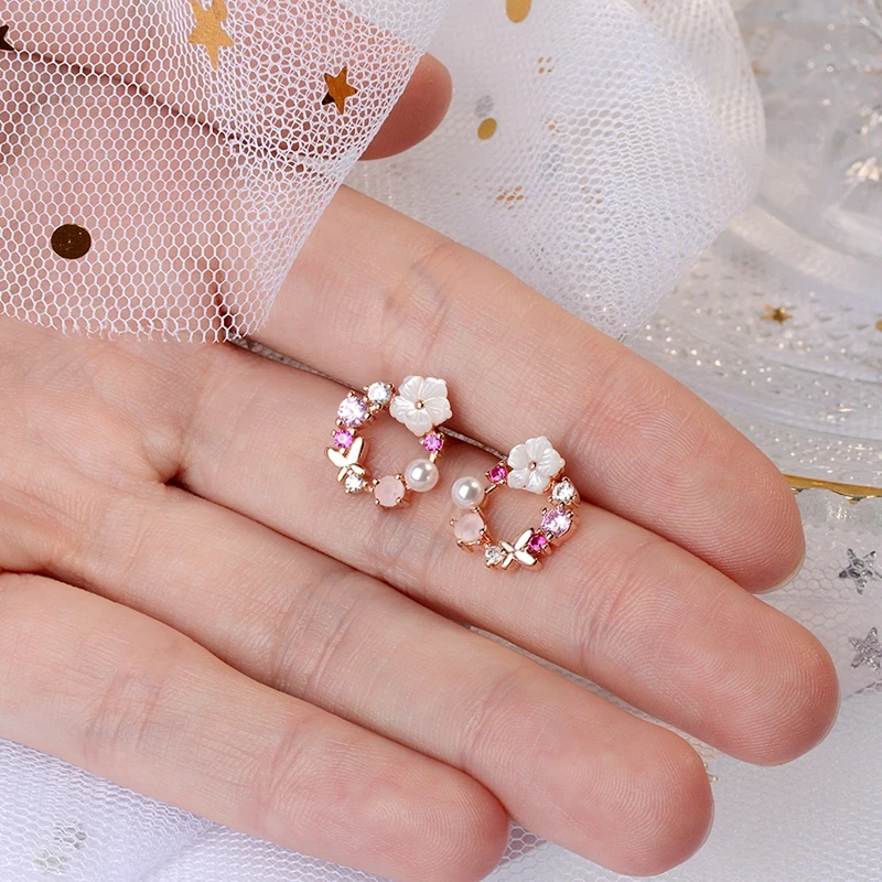 Романтические свадебные серьги-гвоздики в виде цветка сакуры, детал...
