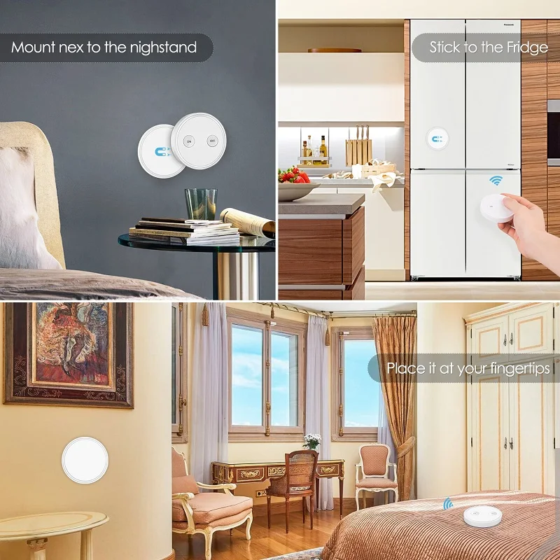 Настенный выключатель и портативный пульт дистанционного управления 2 в 1: пульт дистанционного управления может быть установлен на основании магнитной пластины, закрепленной с помощью двустороннего клея и работает как традиционный переключатель, он также съемный и портативный с пластины и может использоваться в качестве портативного пульта дистанционного управления, Если это так, вы можете разместить его в любом месте, до которого легко достучаться.