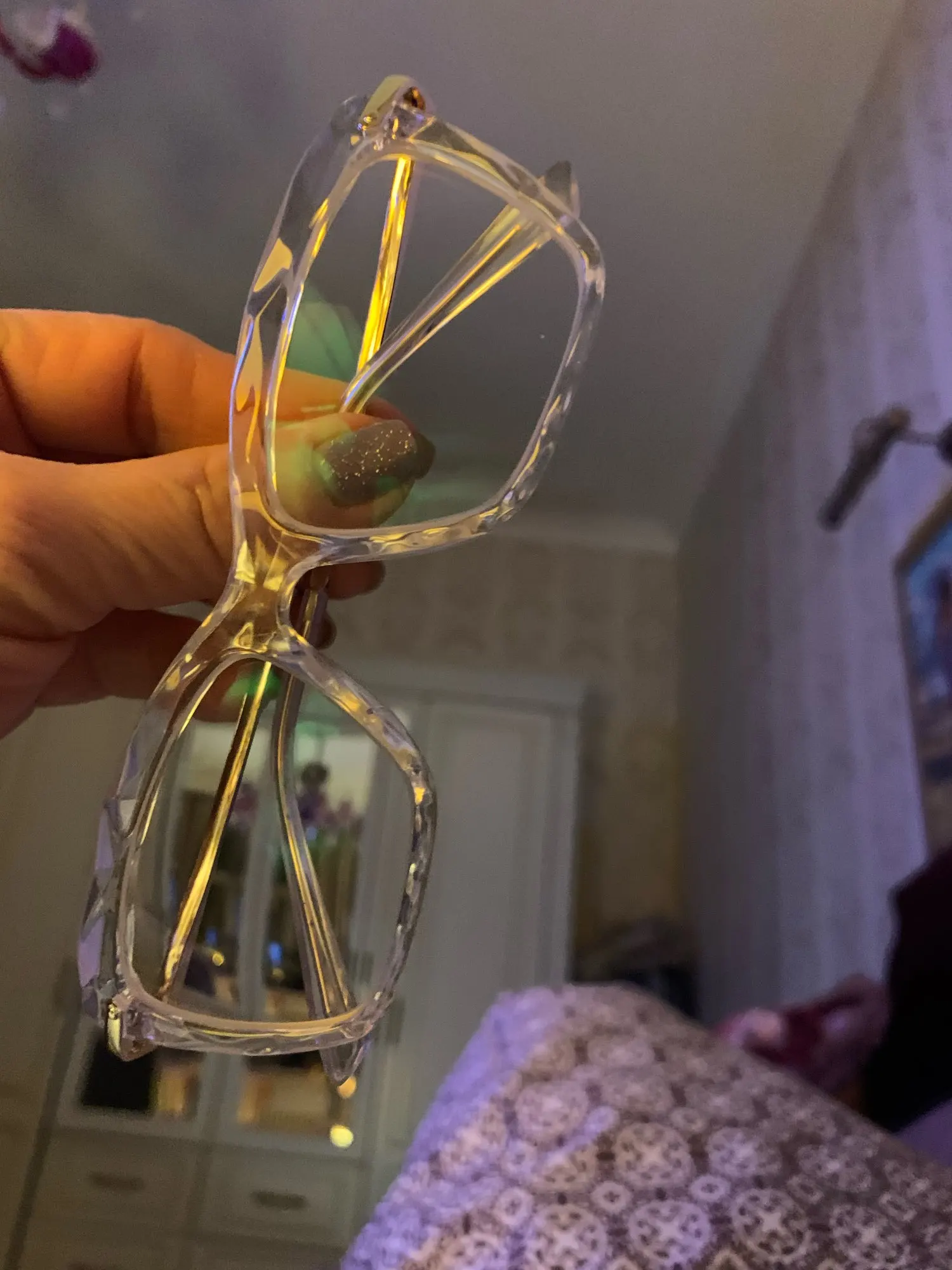 очки бесподобные, оправа стильная, а стекла продавец поставил ооочень хорошего качества. жаль, что идет торговая война....как мы без Китая((((