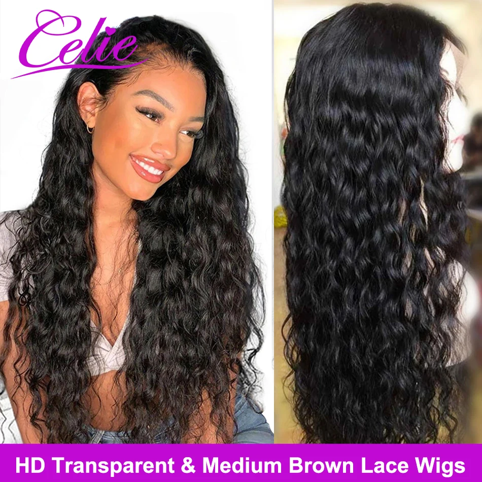 Прозрачные парики Celie HD, влажные и волнистые парики на сетке спереди, безклеевые длинные парики на сетке спереди, парики из человеческих волос 28, 30 дюймов, парик с водной волной