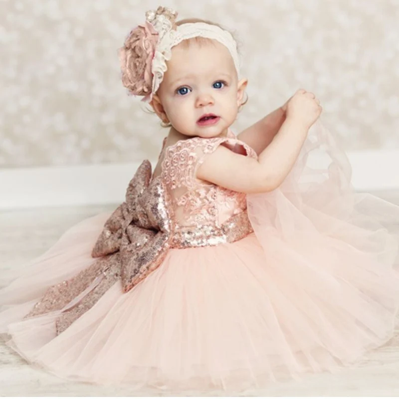 Платье с бантом и блестками для маленьких девочек на 1 день рождения, свадьбу, крестины