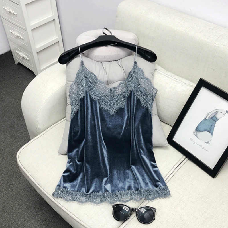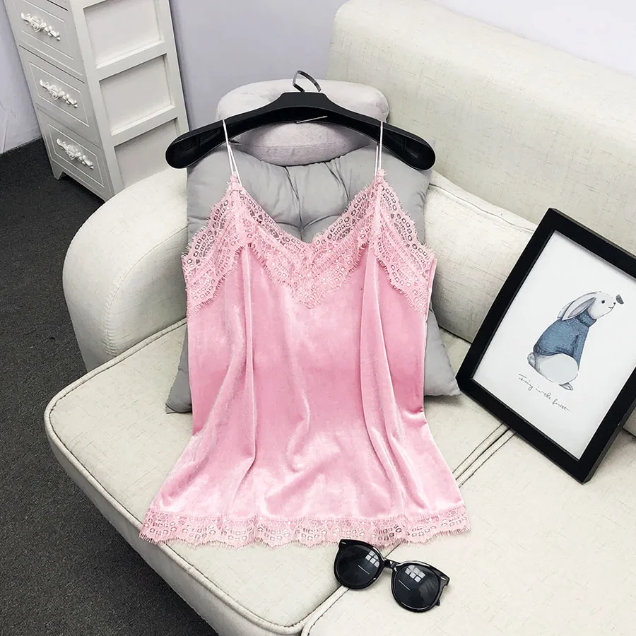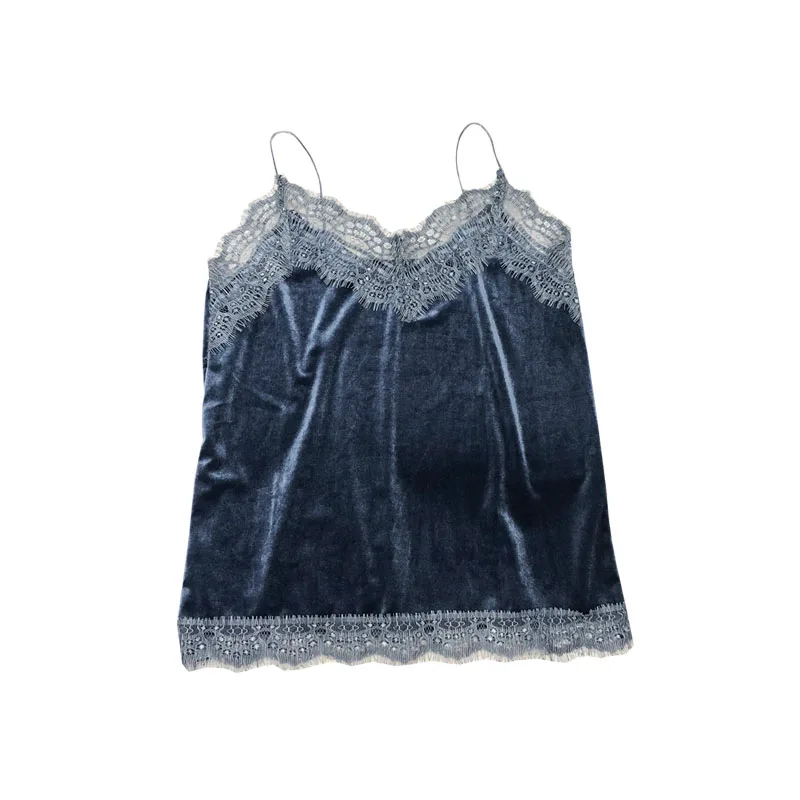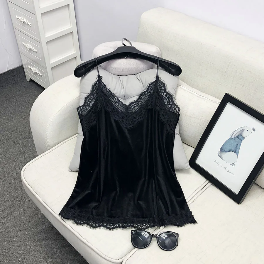 Майка женская кружевная, бархатная, с V-образным вырезом и лямкой на шее