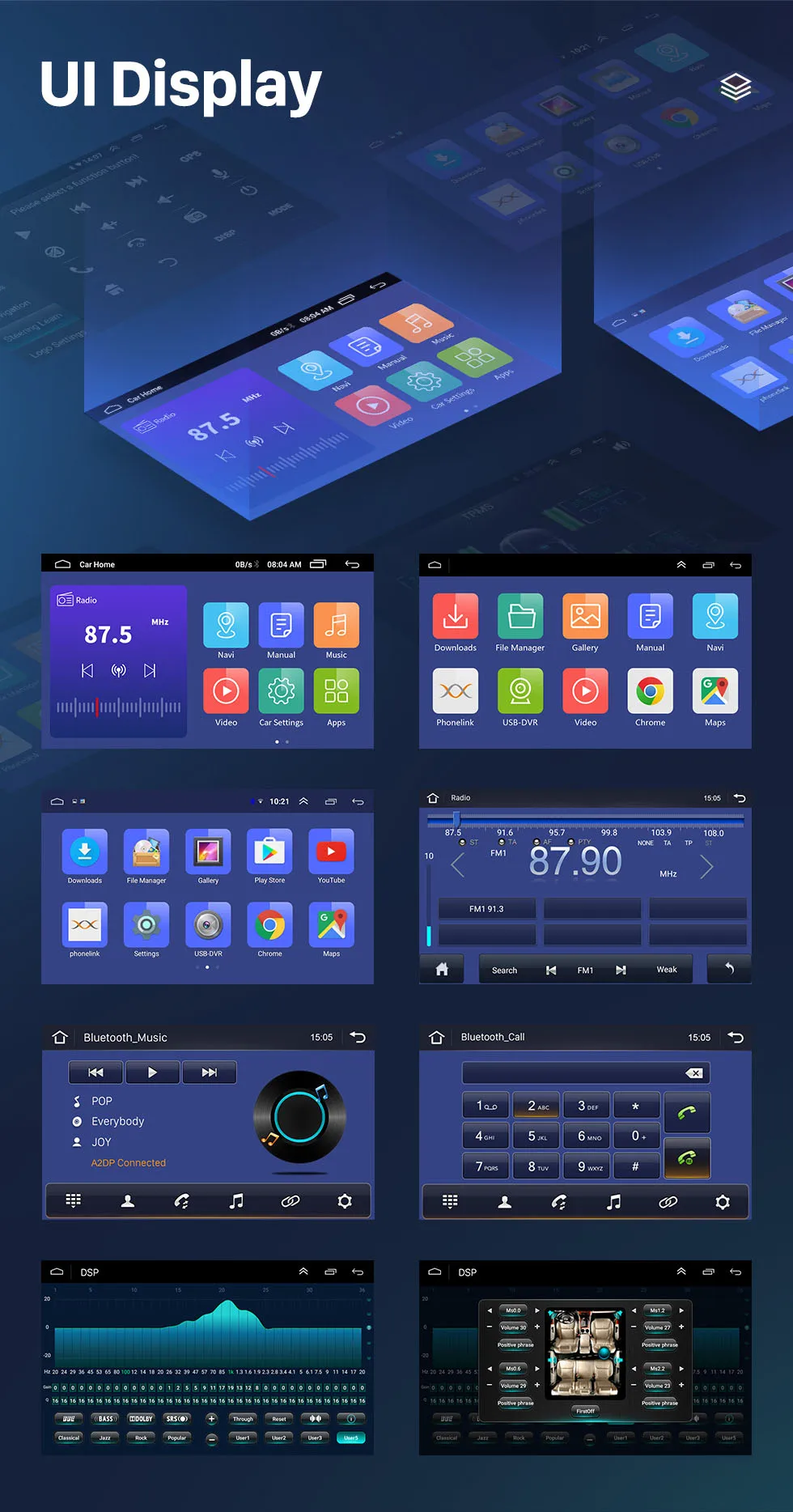 КонфигурацияОС: Android 10,0 API = 29Процессор Восьмиядерный 2,5 ГГцОперативная память 4 Гб DDR4 ROM 64 ГБЭкран: 9inch2.5D QLEDmulti-сенсорный экранС DSP 36EQУсилитель: ST 7850; Радио IC:NXP6856 встроенный CarplayПоддержка камеры 360 градусов RDS, 4G & WiFi/загрузка приложений/3D навигация/радио тюнер/Bluetooth/Двойная зона/управление файлами/HD 1080P видео/Управление рулевым колесом/зеркальная Ссылка/OBD2/DVR/резервная камера/MP3/USB/SD и т. Д.Рабочая температура:-30 ~ 80 ℃