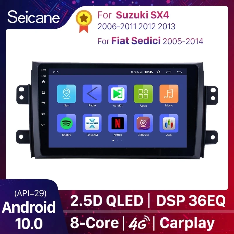 Автомагнитола Seicane, мультимедийный проигрыватель 4G, GPS, для Suzuki SX4 2006-2011, 2012, 2013, для Fiat Sedici 2005-2014, Android 10,0, DSP, QLED