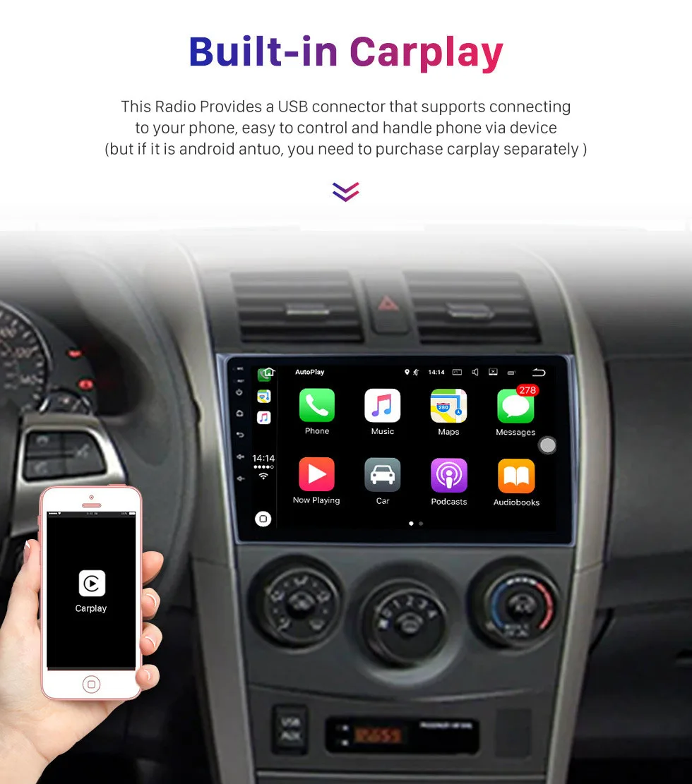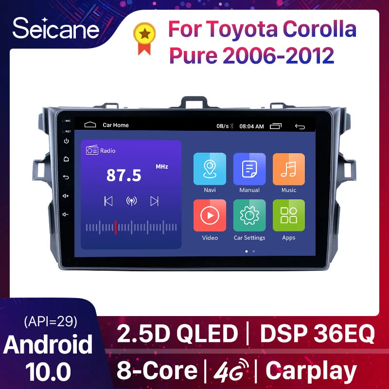 Автомобильный GPS-Мультимедиа Seicane, 9 дюймов, Android 10,0, для 2006, 2007, 2008, 2009, 2010, 2011, 2012 Toyota Corolla, навигатор, поддержка Bluetooth